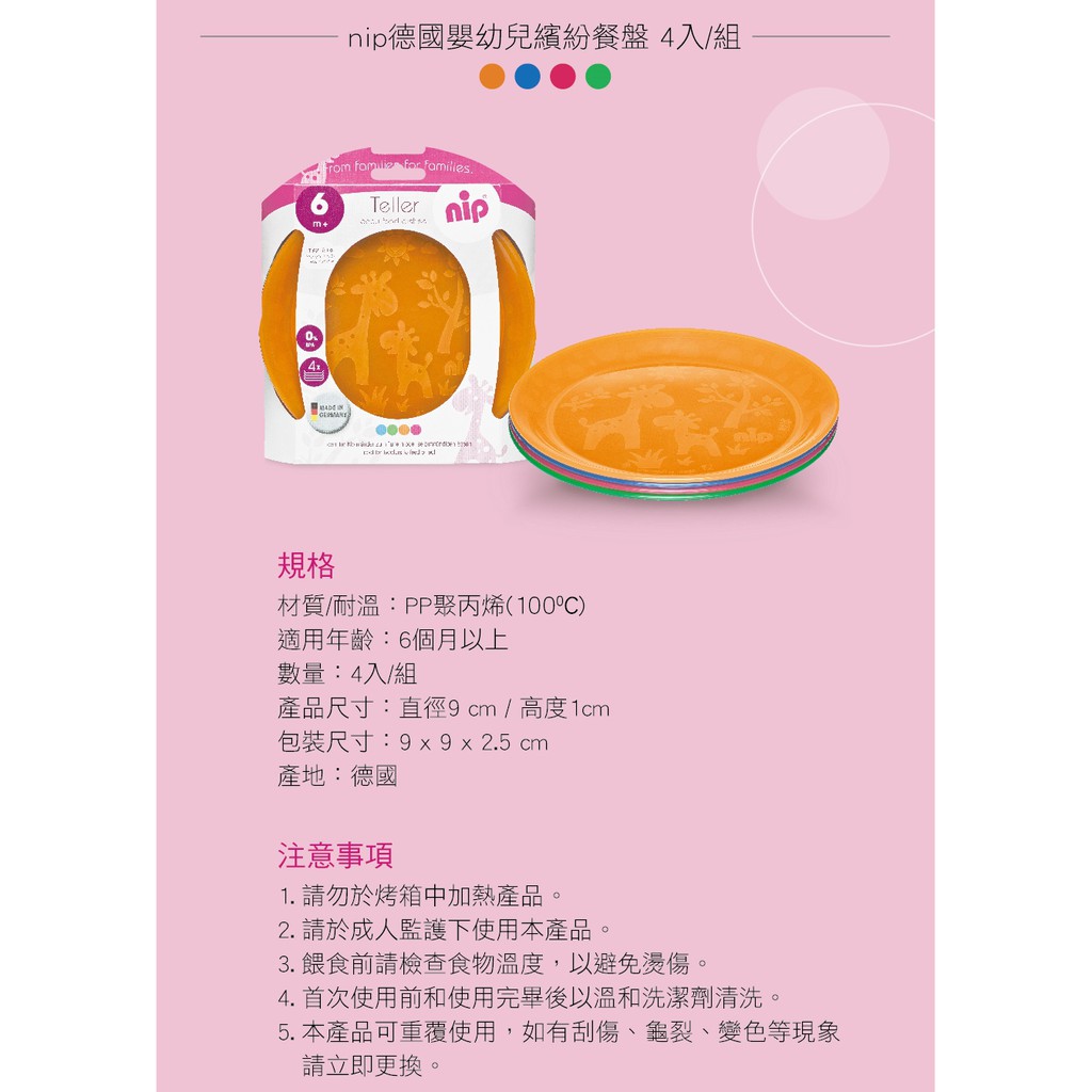 【NIP】德國製嬰幼兒繽紛餐盤4入組 小丁婦幼