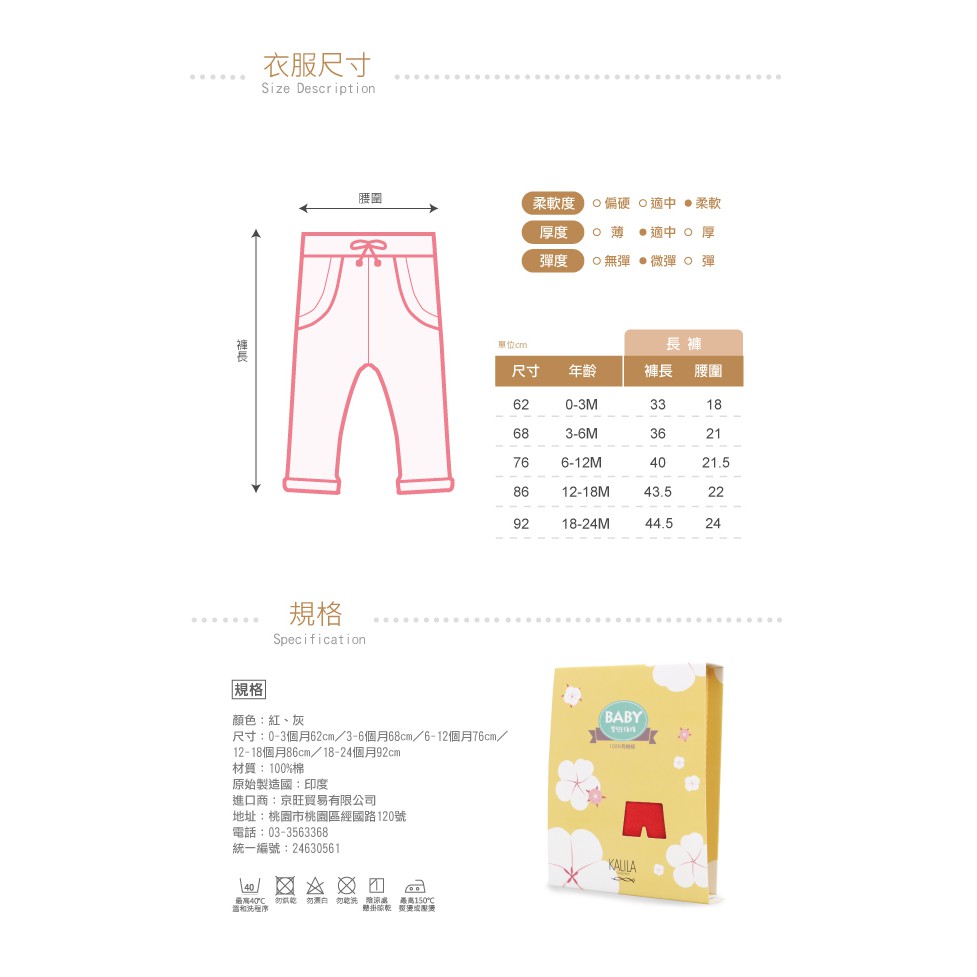 KALILA 嬰幼兒童有機棉長褲-紅(0-24M) GOTS認證有機棉 小丁婦幼