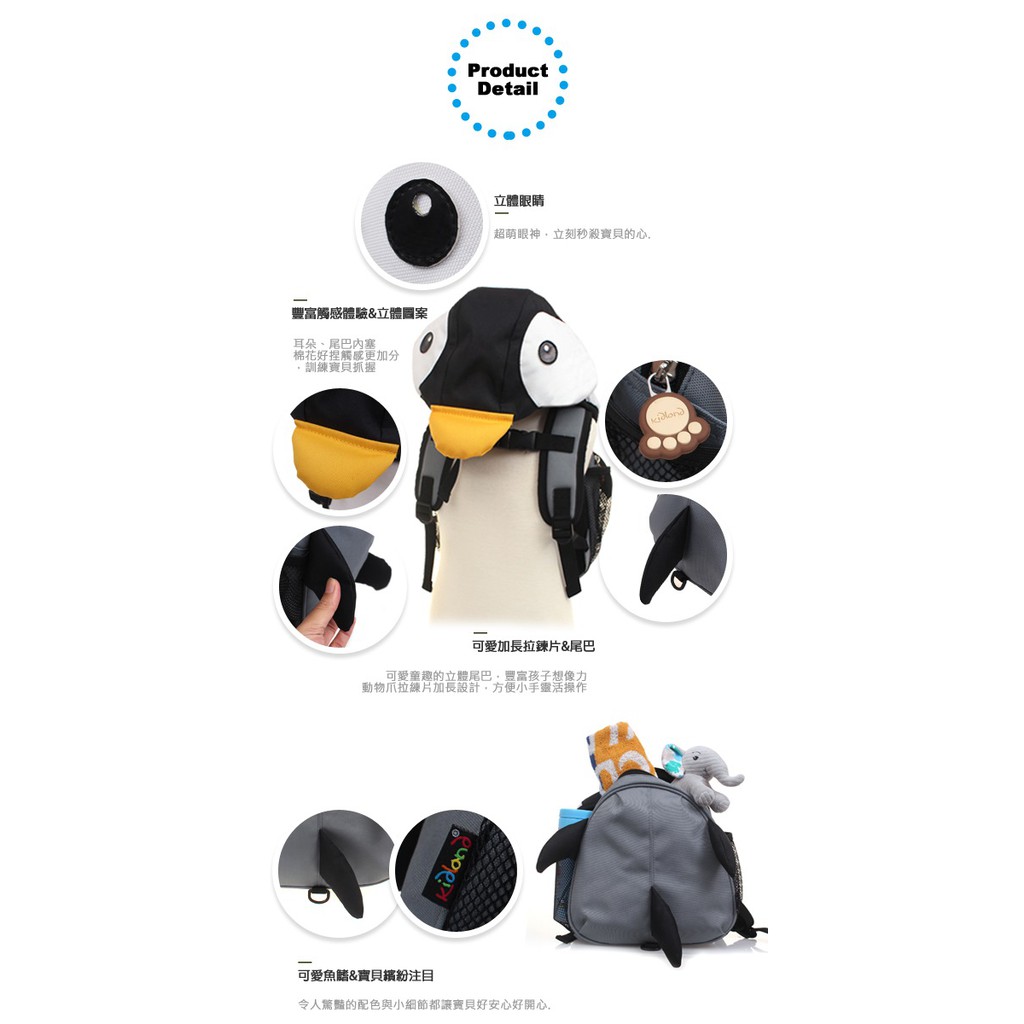 KIDLAND 動物連帽兒童防走失後背包-企鵝 R-AYI-17111 小丁婦幼