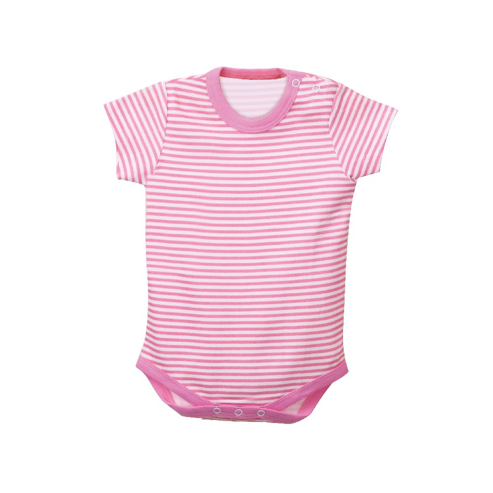 Organic Life有機棉短袖連身包屁衣-粉條紋(0-12M)