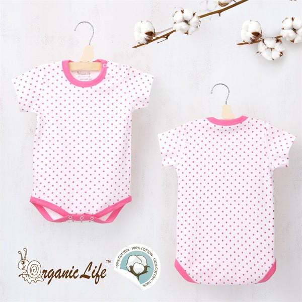 Organic Life有機棉短袖連身包屁衣-桃圓點(0-12M)