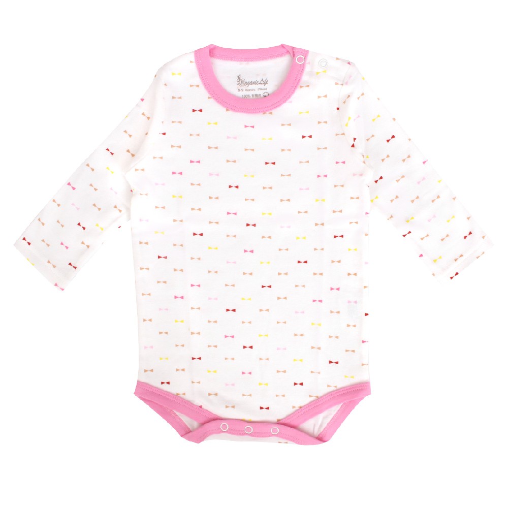 Organic Life有機棉長袖連身包屁衣-粉幾何(0-12M)