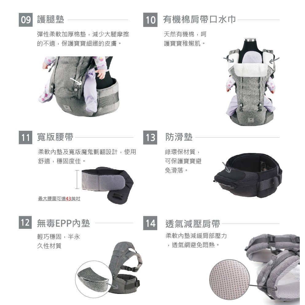 【Haenim】坐墊式省力揹巾/背巾-沉穩黑/質感灰(附初生腰帶)