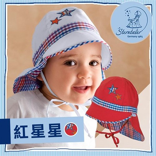 【STERNTALER.】德國 抗UV護頸遮陽童帽-紅星星(43-53cm)C-1501660-806