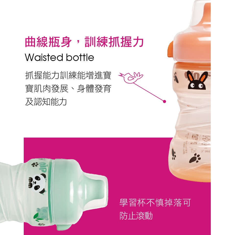 【NIP】德國製鴨嘴學習訓練杯260ML-熊貓/兔子(適合9m+) 小丁婦幼