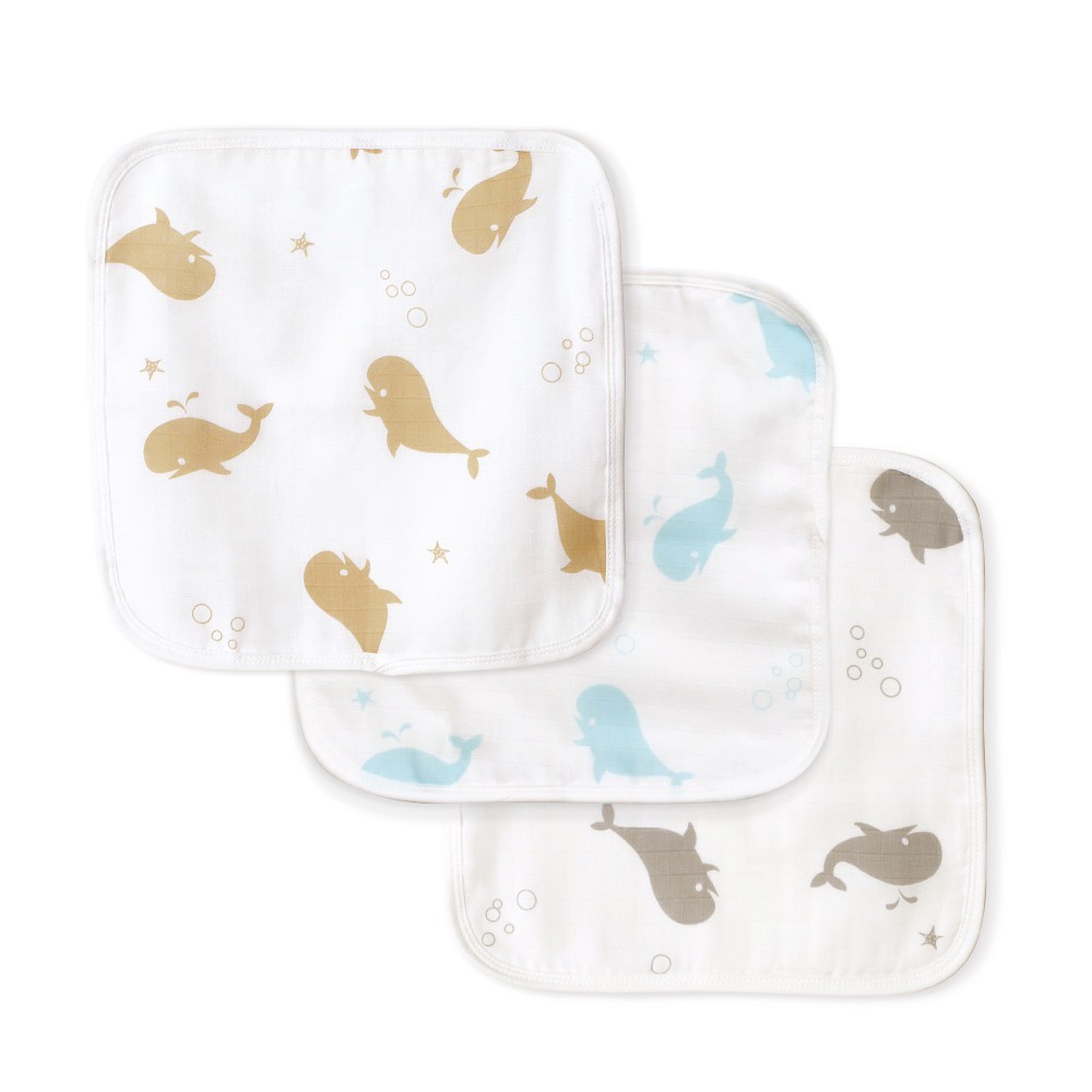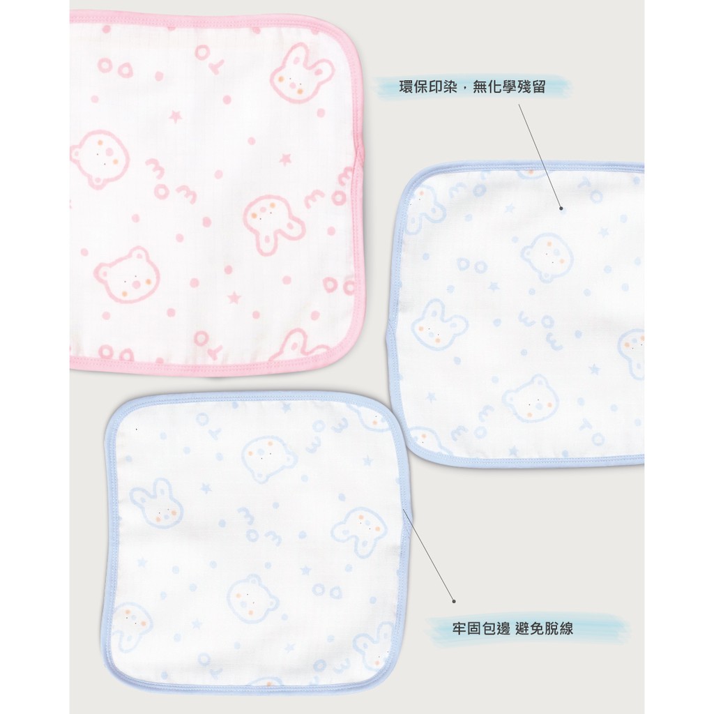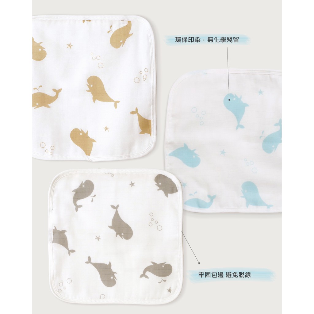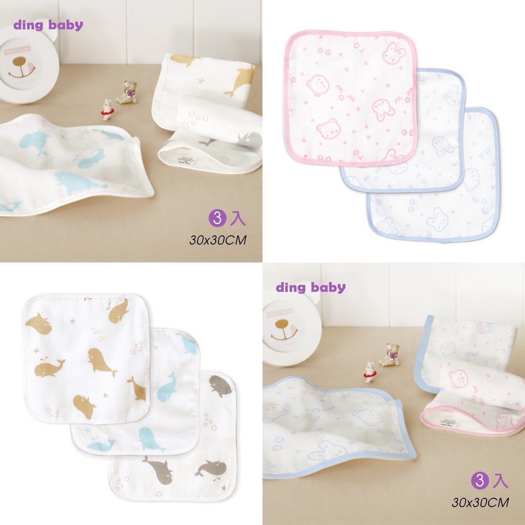 【ding baby】MIT台灣製六層紗純棉小方巾30*30-三入組(鯨魚/圓圓兔)