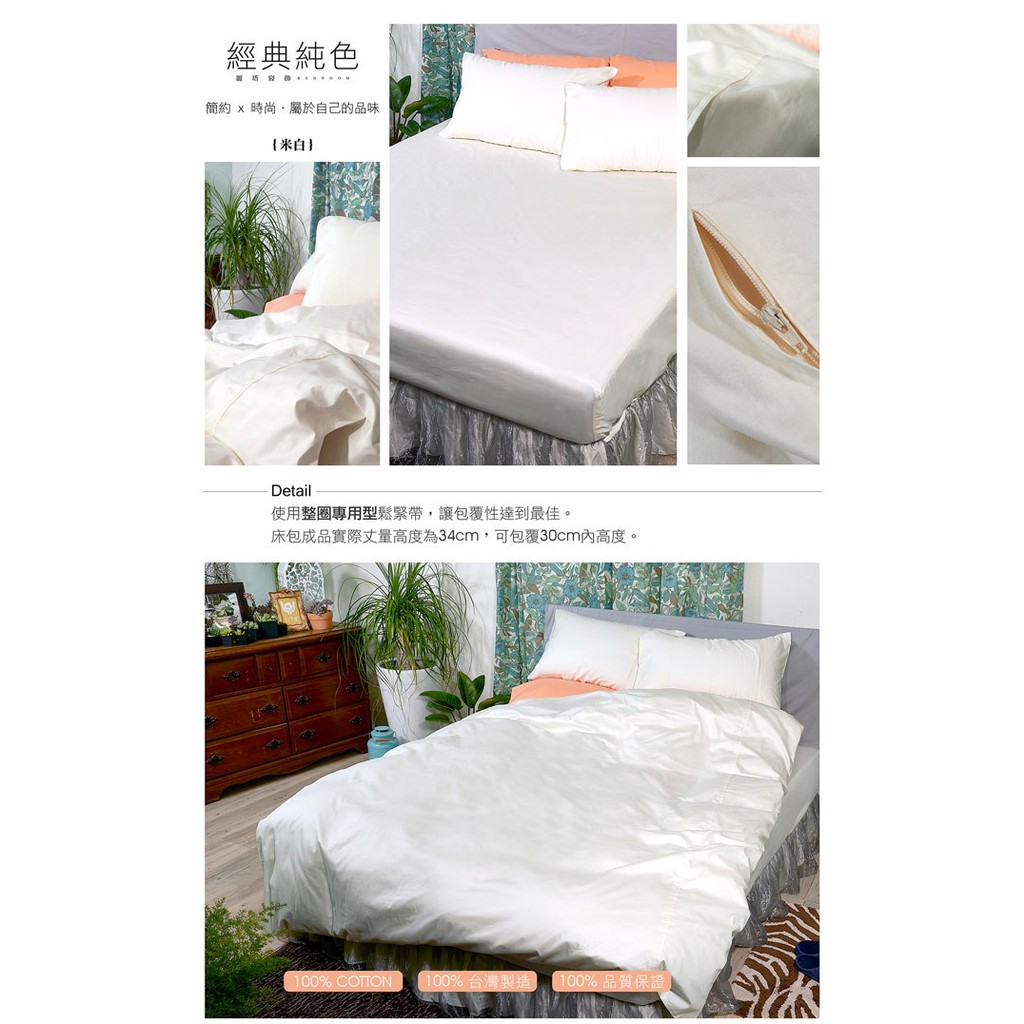 麗塔寢飾 40支紗/床包薄被套枕套組/《經典純色-米白》100%精梳棉/單人/雙人/加大/特大