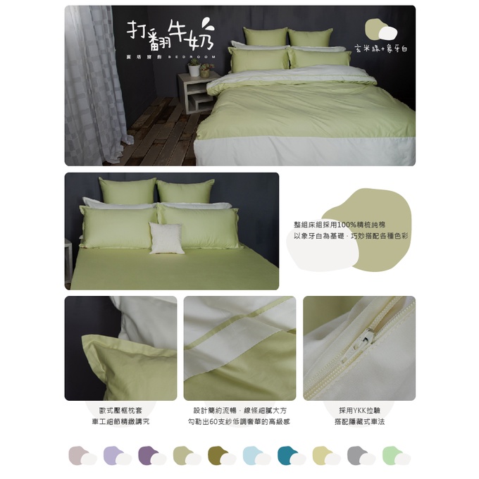 麗塔寢飾 60支紗/床包薄被套枕套組/《打翻牛奶-玄米綠+象牙白》100%精梳棉/單人/雙人/加大/特大