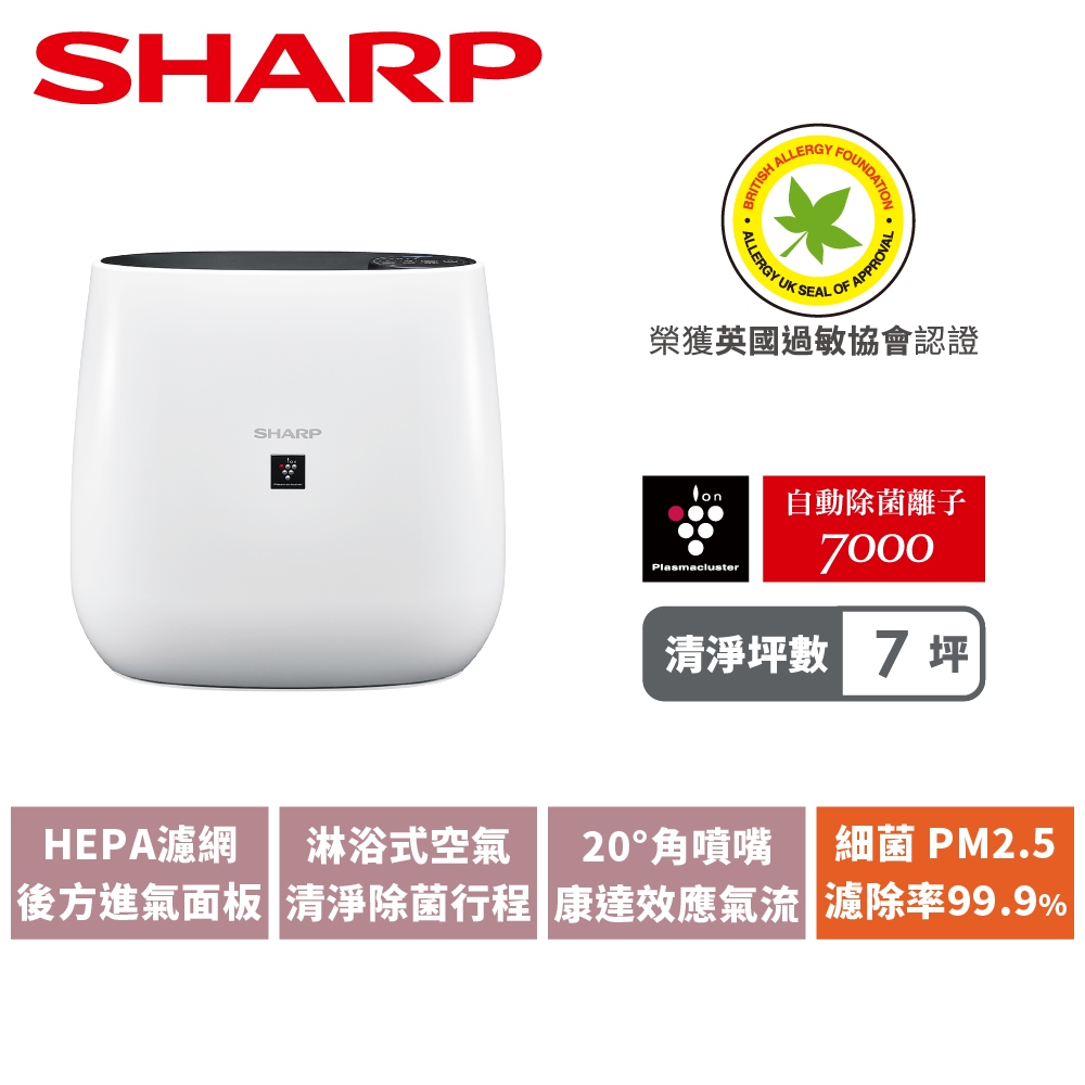 【SHARP夏普】7坪 自動除菌離子空氣清淨機 FU-J30T-W