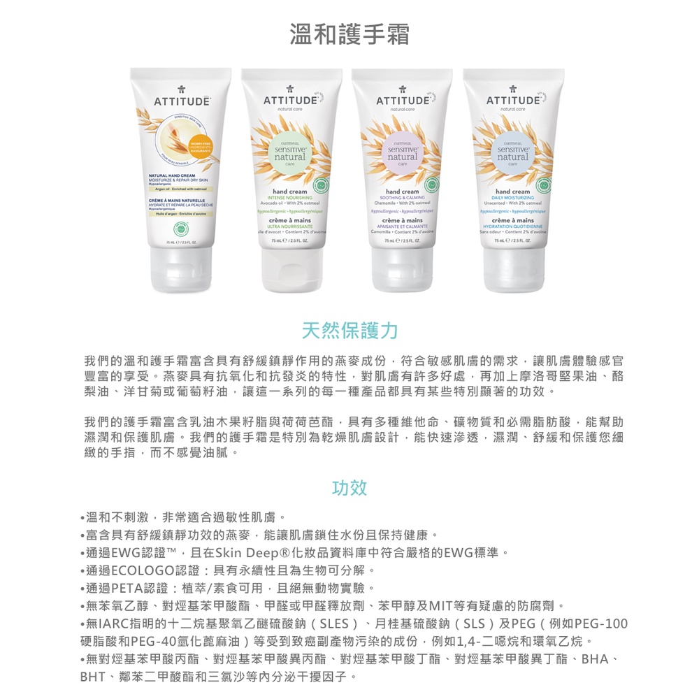Attitude 艾特優 酪梨油溫和護手霜 75ml