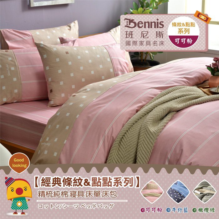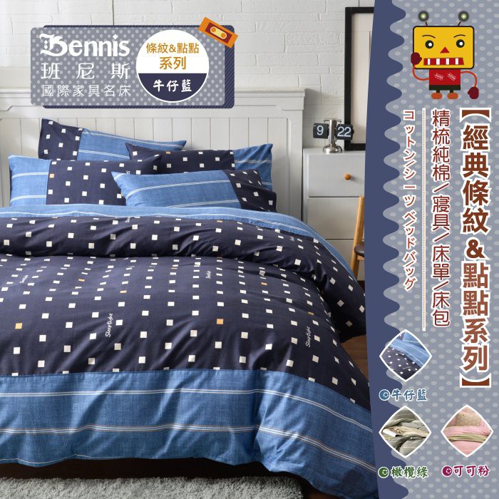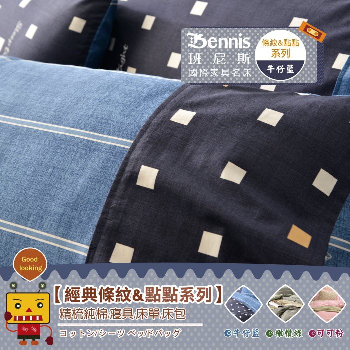 【班尼斯】35cm高精梳純棉床包被套組台灣製造【條紋&點點系列】多種尺寸選/適用新一代高獨立筒彈簧床墊
