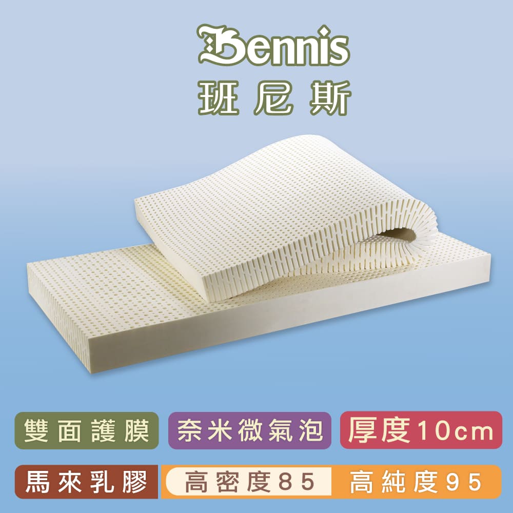 【班尼斯】乳膠床墊高純度95%高密度85最頂級【10cm厚雙面護膜】單人床墊/雙天床墊推薦天然乳膠馬來西亞嚴選