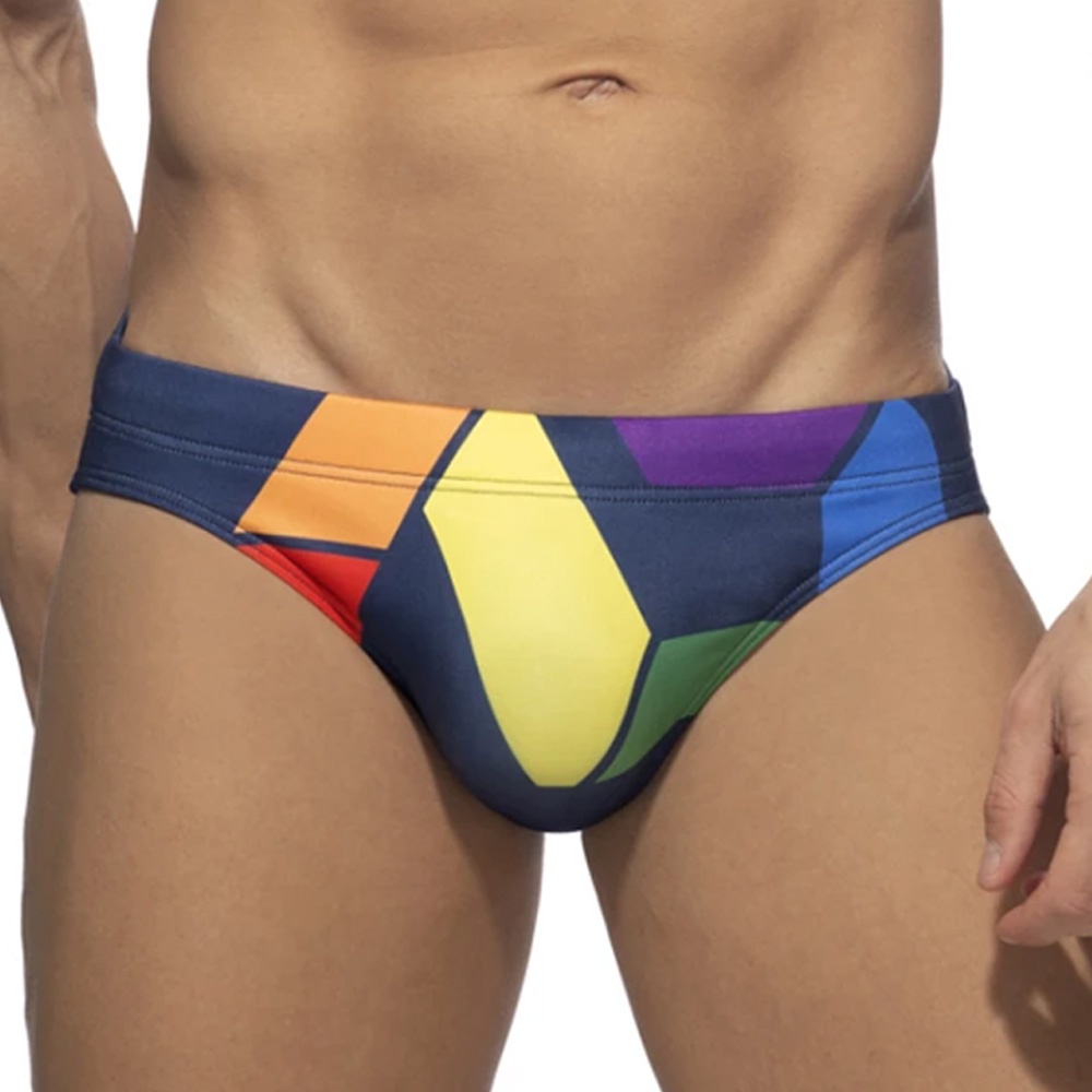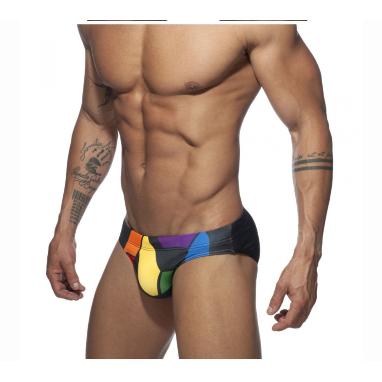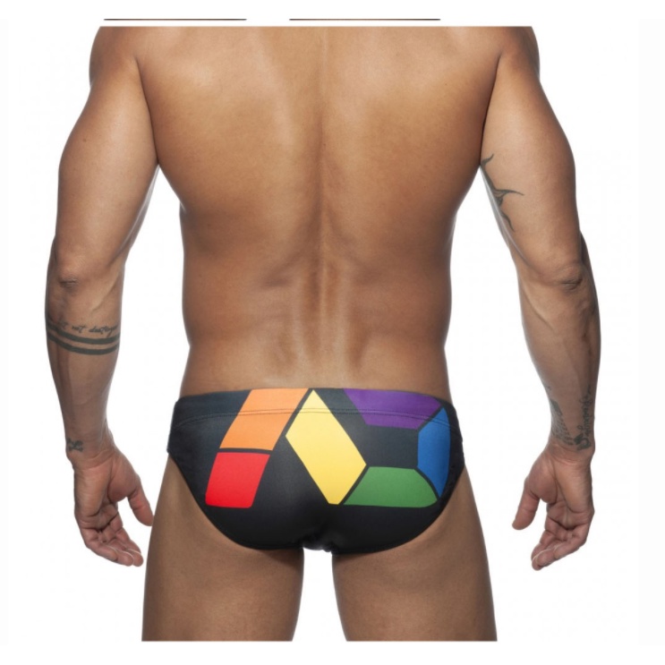 Addicted【正品台灣現貨♥️ 隱密出貨】彩虹驕傲大字三角泳褲 黑 白 (ADS222) 同志 性平