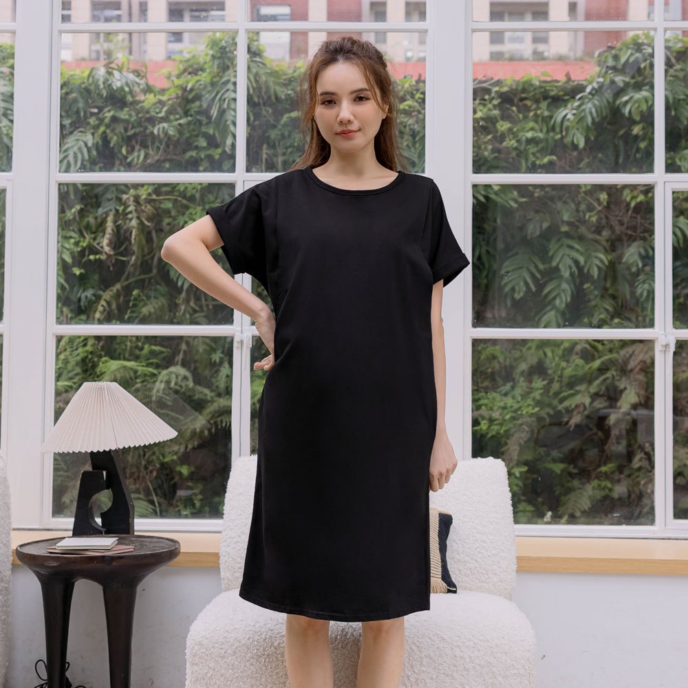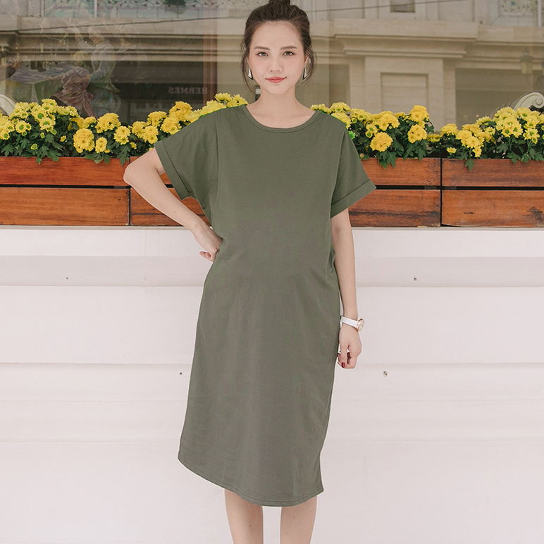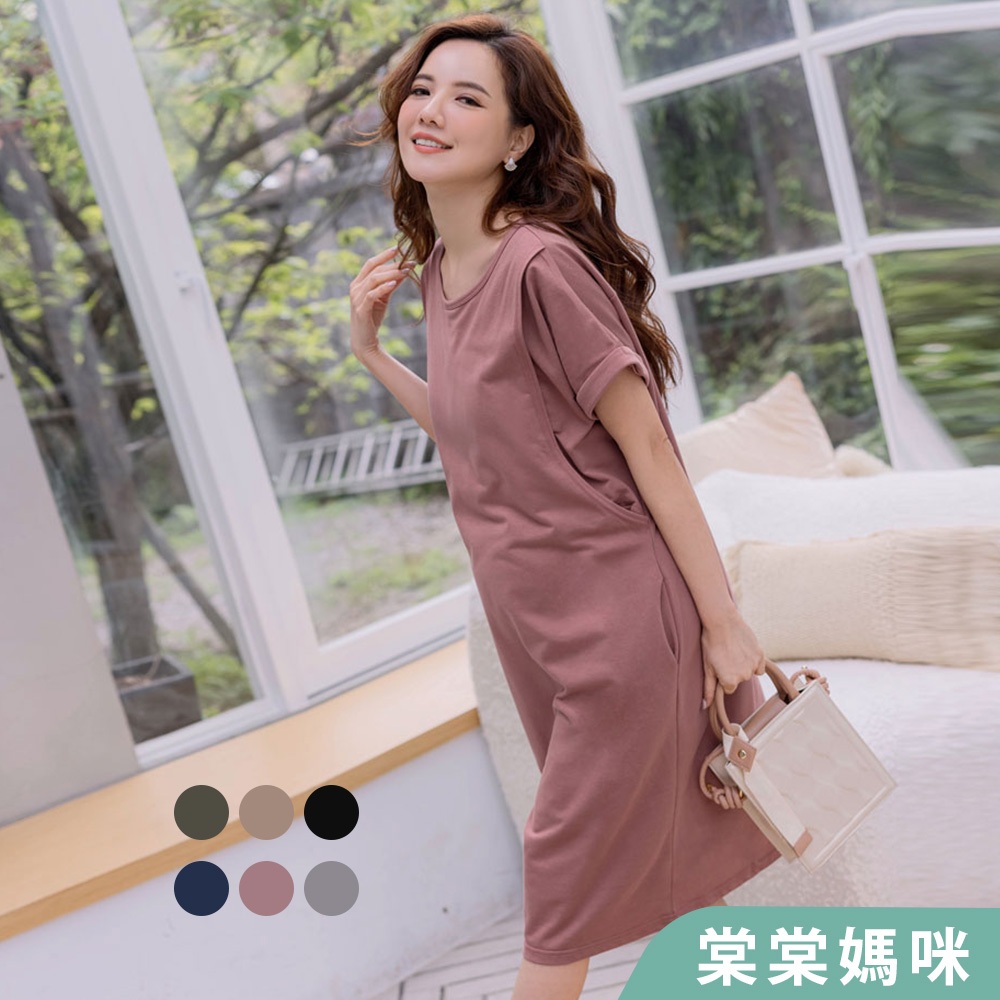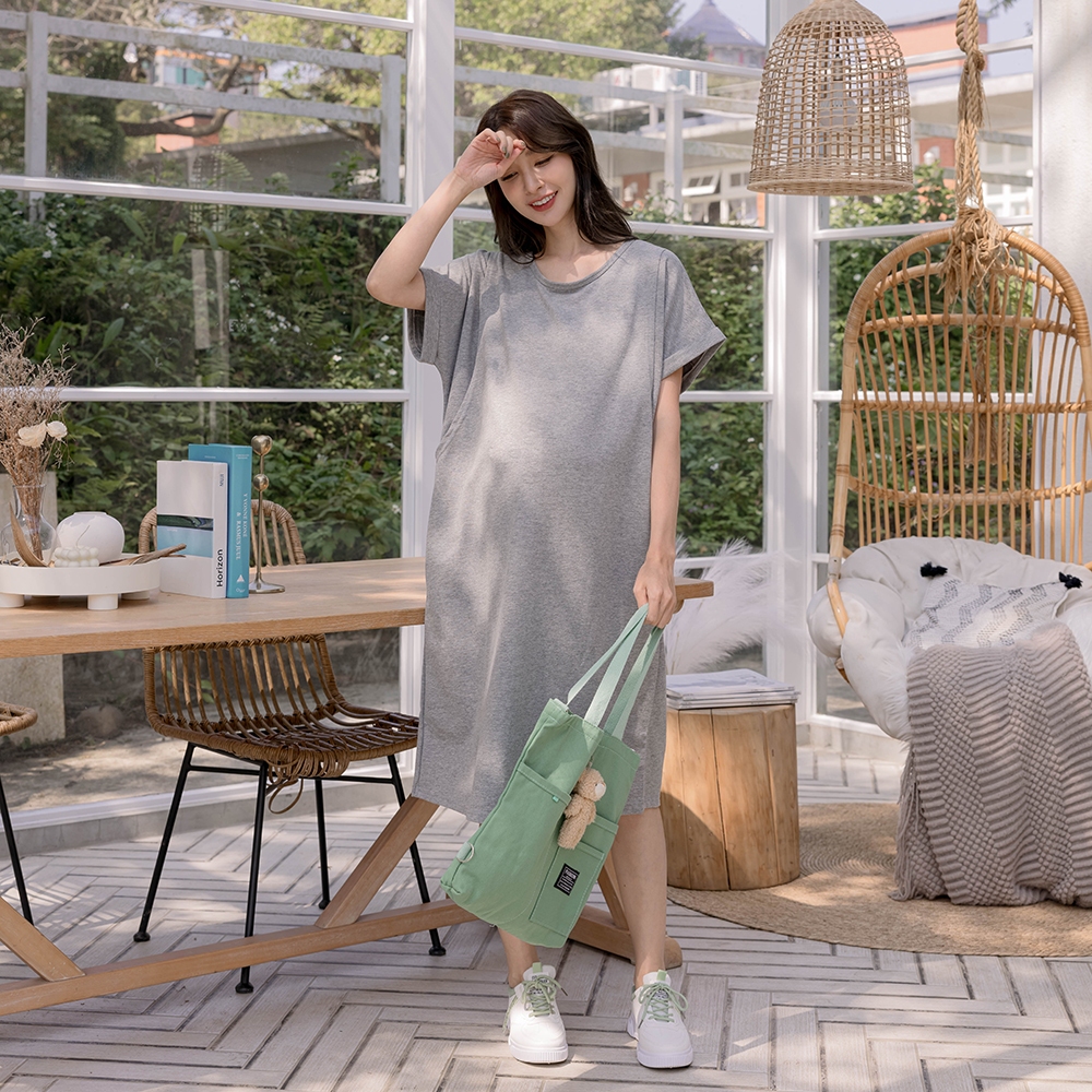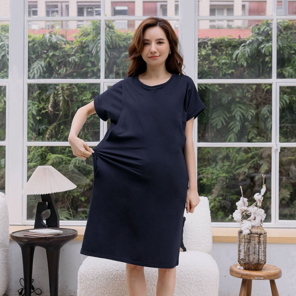 【棠棠媽咪】袖反摺純色側掀哺乳洋 韓國空運 經典純色 孕婦裝 哺孕二用 - 10210066