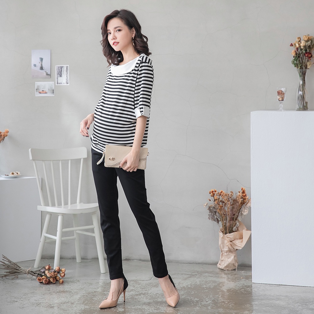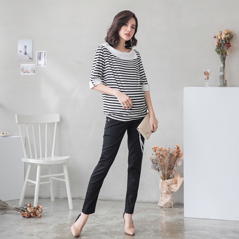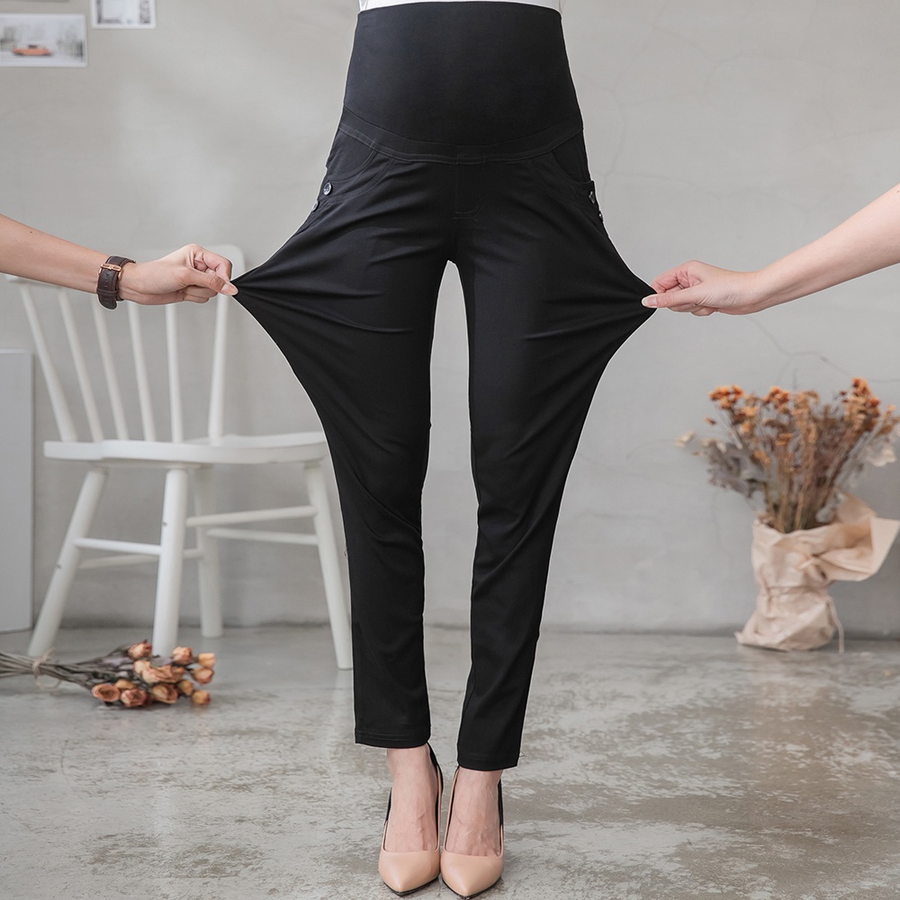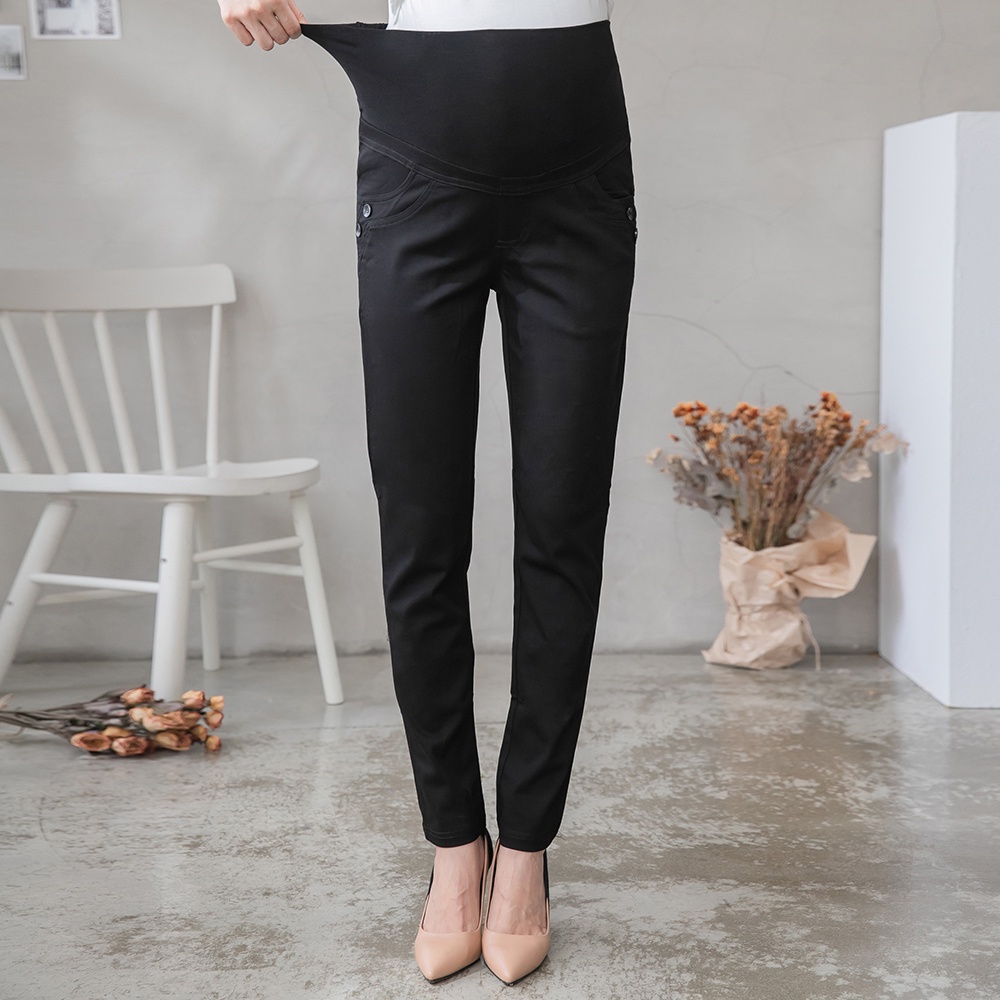 【棠棠媽咪】弧線袋雙釦彈力小直筒長褲 孕婦褲 上班褲 孕婦裝 - 01420033