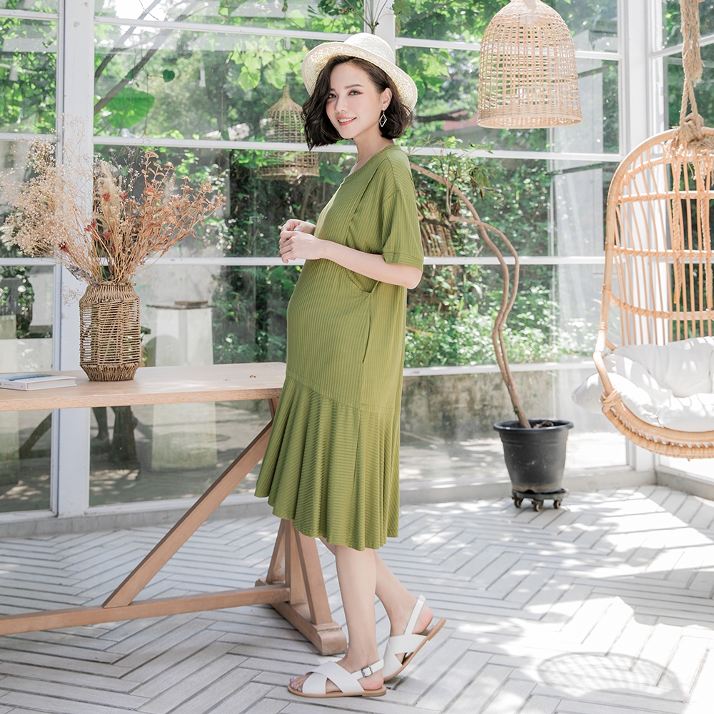 【棠棠媽咪】涼感坑條魚尾側掀哺乳洋(彈) 哺乳洋裝 春 孕婦裝 - 10210143