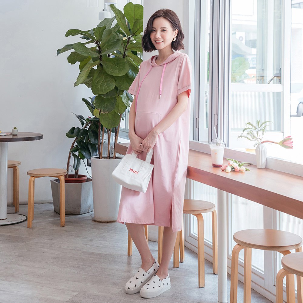 【棠棠媽咪】連帽鼠袋側掀哺乳洋裝 帽T哺乳裝 孕婦裝 - 10280018