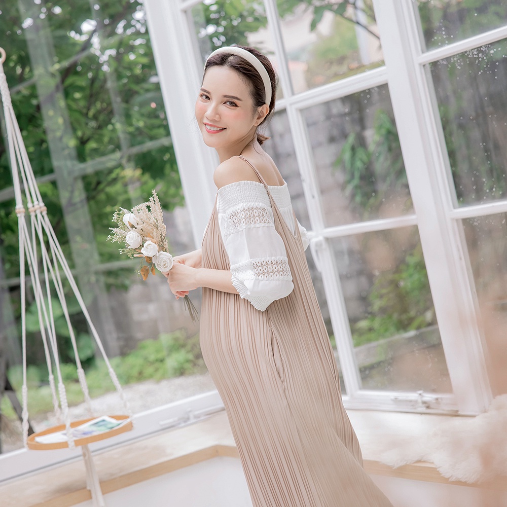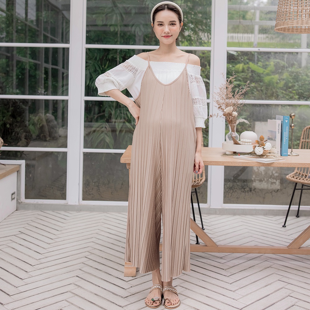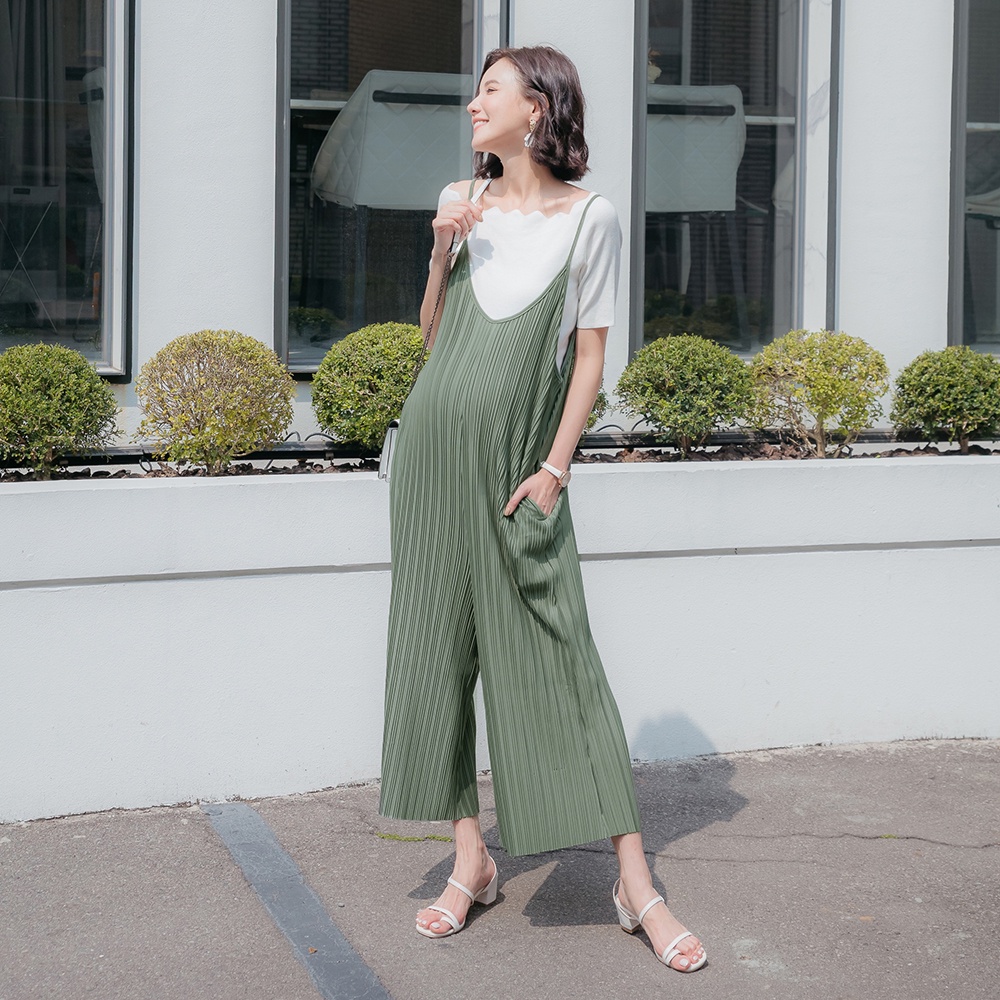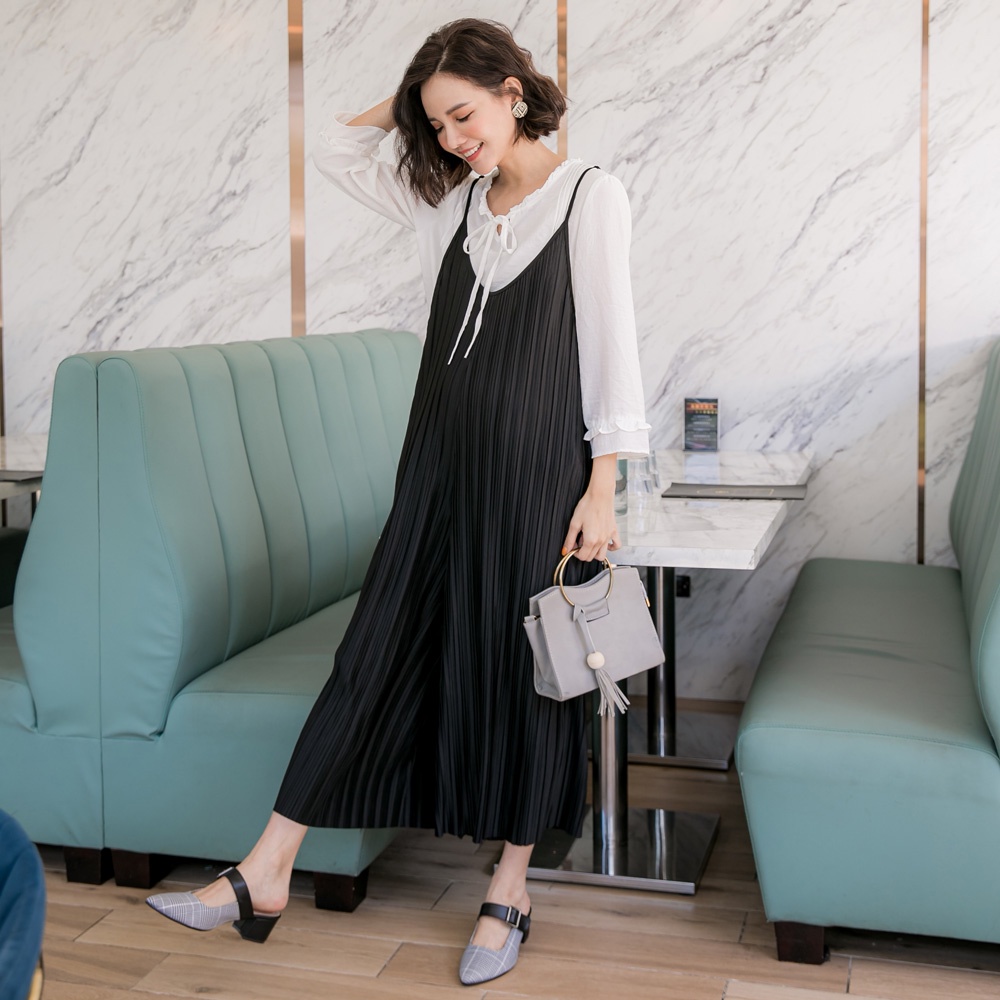 【棠棠媽咪】細壓摺側袋連身雪紡大寬褲(超彈) 孕婦褲 吊帶褲 孕婦裝 - 01710017
