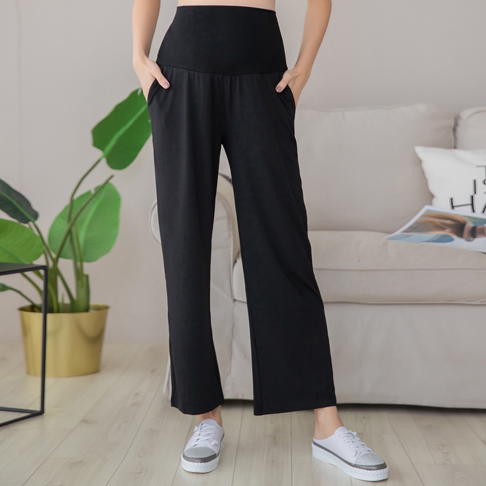 【棠棠媽咪】彈力涼感棉雙袋瑜珈腰長褲(薄) 孕婦褲 寬褲 孕婦裝 - 01110012