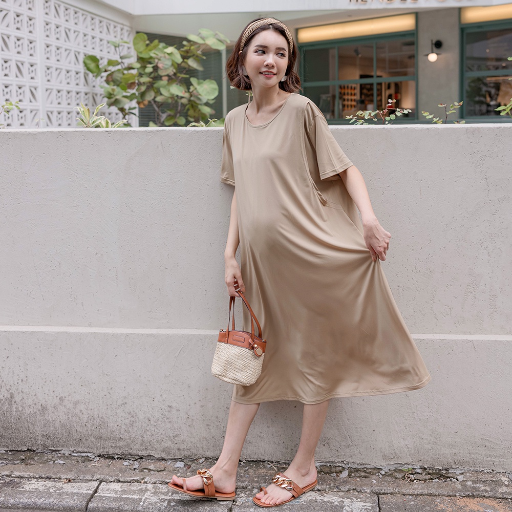 【棠棠媽咪】素色涼感棉微傘側掀哺乳洋(薄彈) 哺乳裝 涼感 韓國空運 輕薄舒適 - 10210149