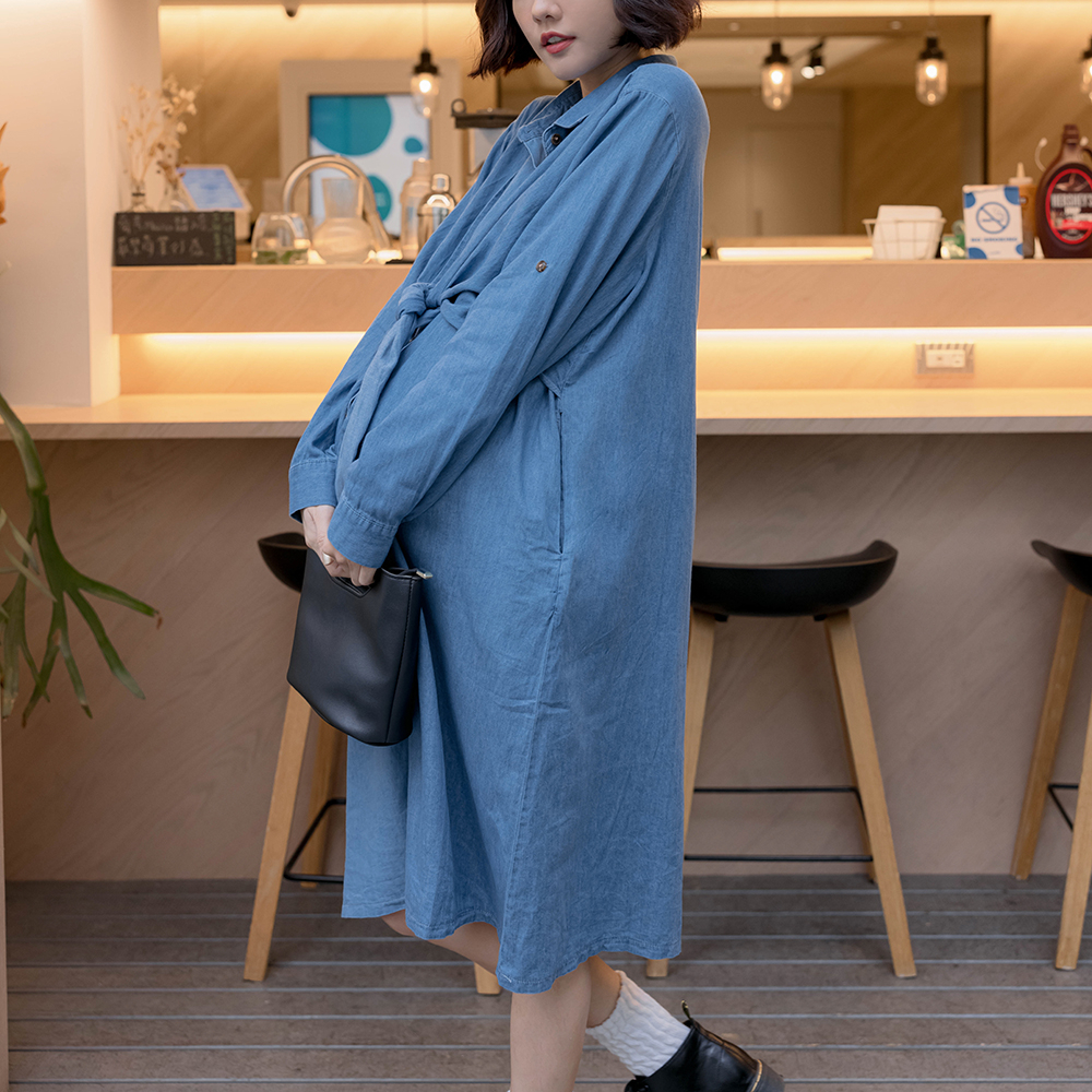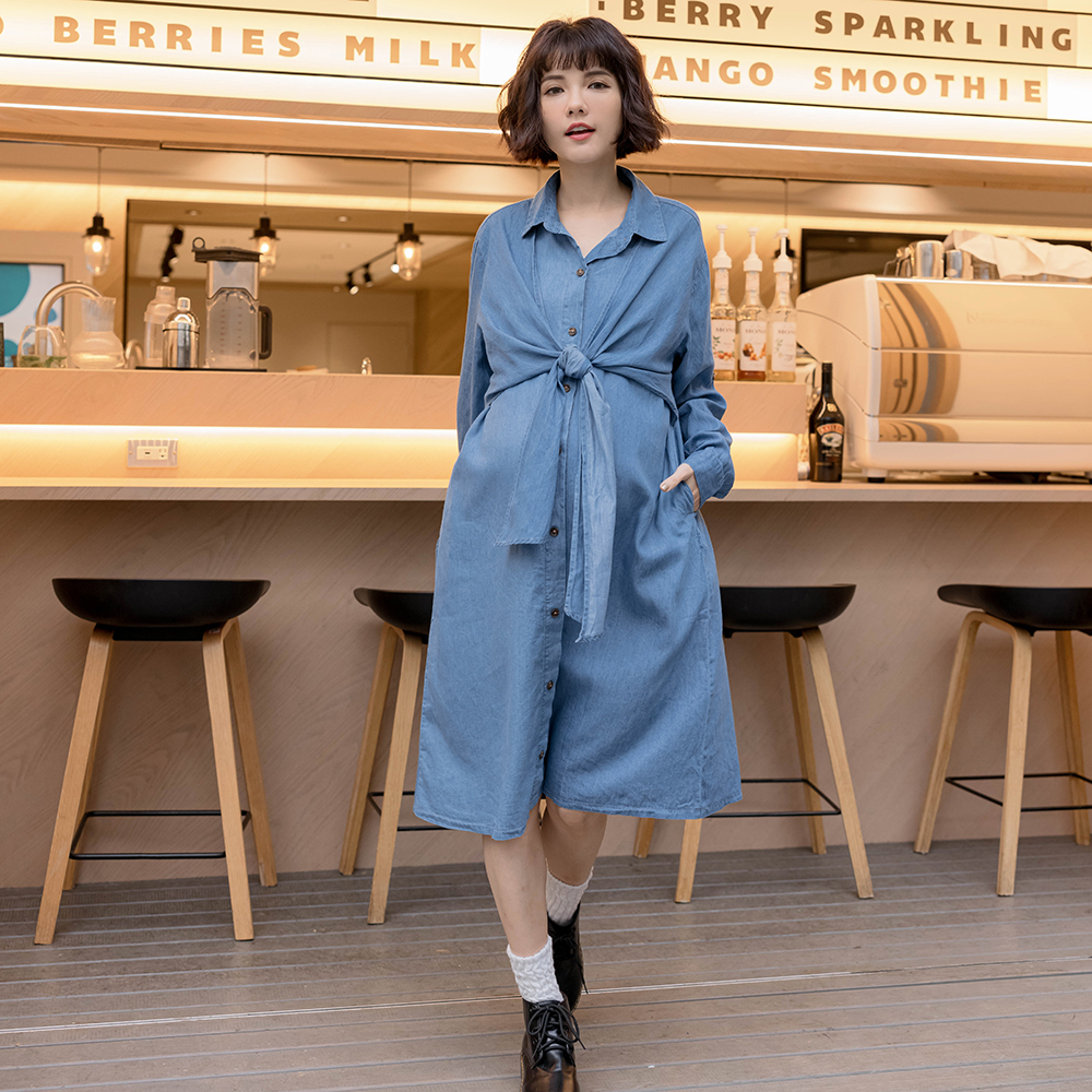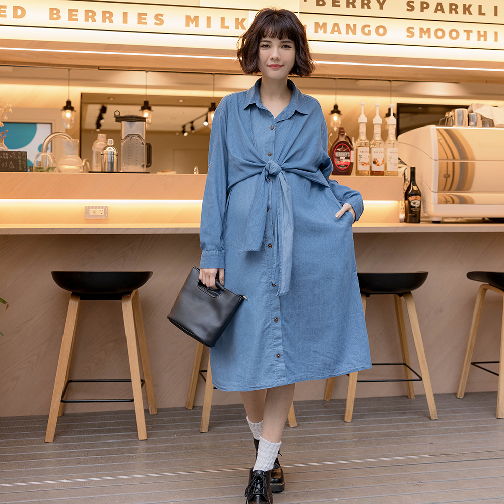 【棠棠媽咪】水洗牛仔前綁結開釦哺乳洋 孕婦裝 新品 牛仔洋 - 10260009