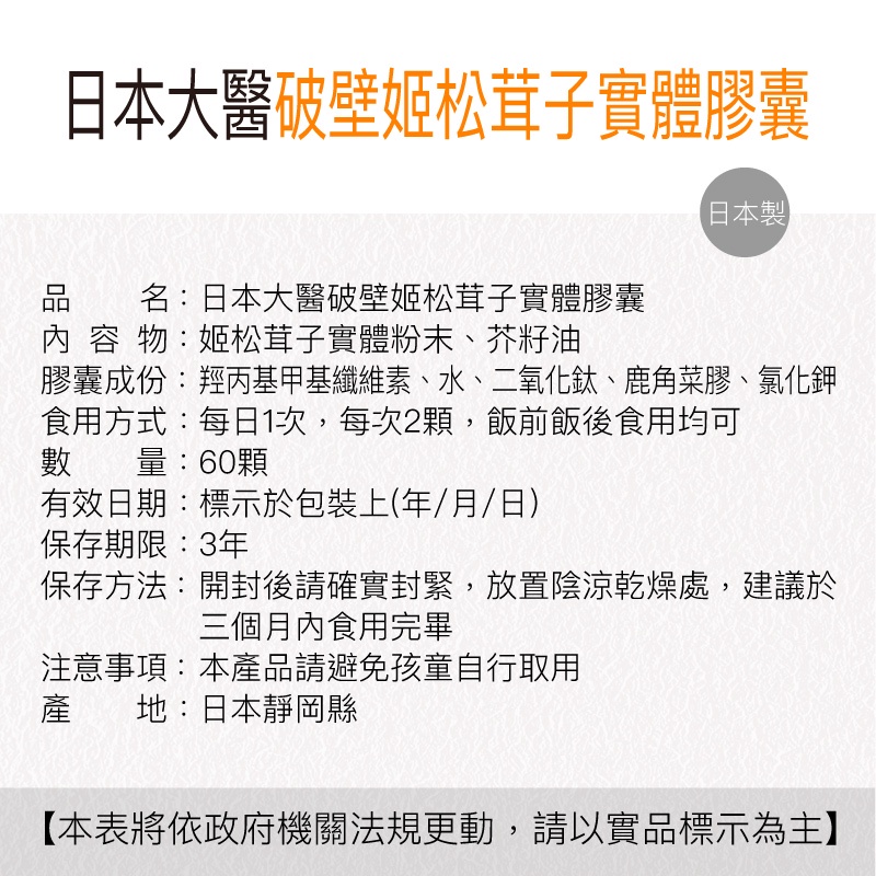 日本大醫姬松茸子實體膠囊60顆[買2送1](下單2入出貨3入) 巴西蘑菇 病後補養
