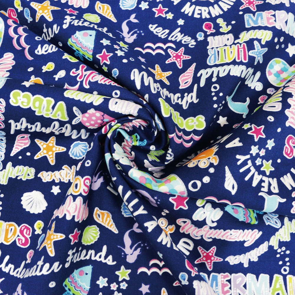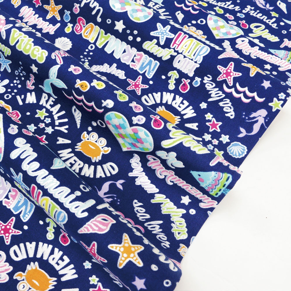 【臺灣喜佳】美式布料/美人魚海底世界系列-海洋標語(布料有燙銀+珠光細節/100%棉)