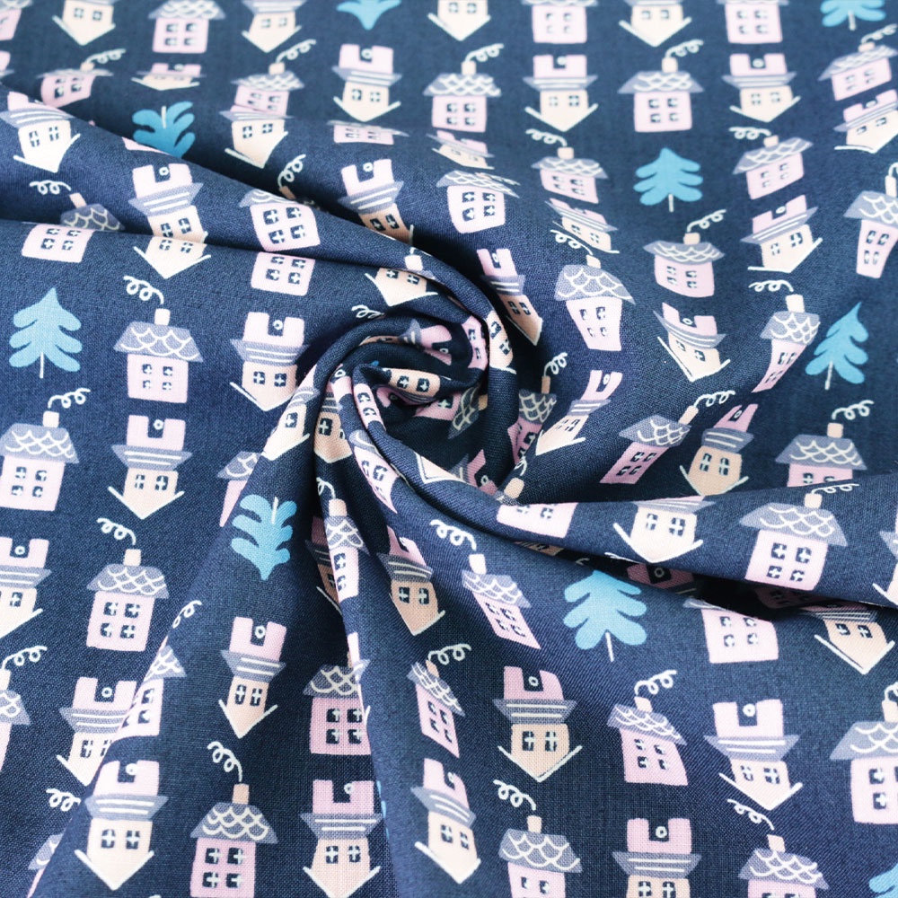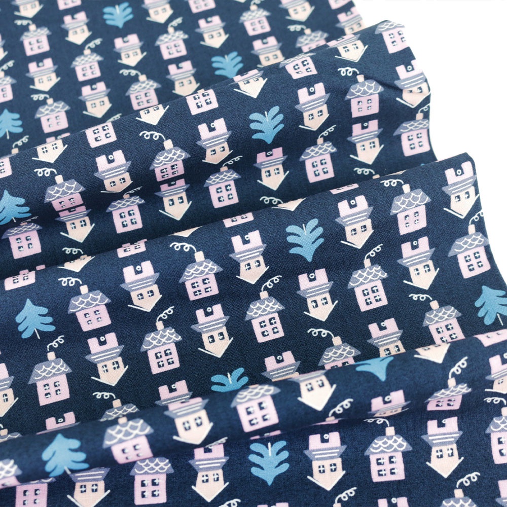 【臺灣喜佳】日本布/日式布料/生活態度系列-獨棟透天房(藍/100%棉)