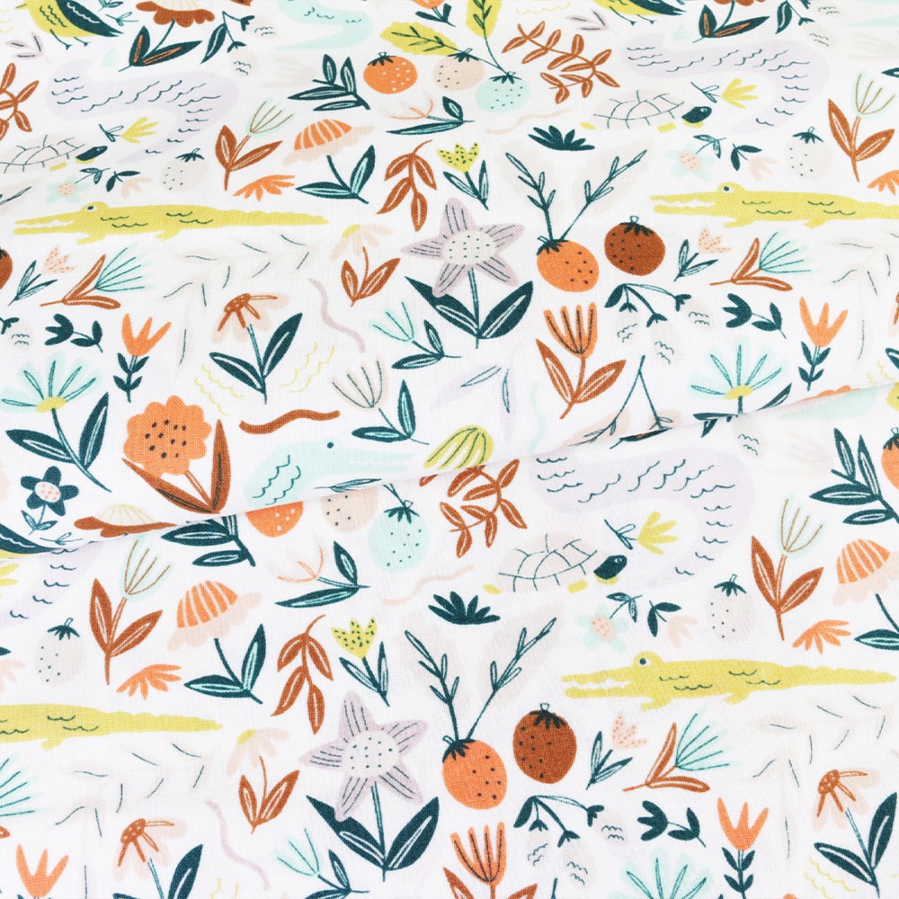 【臺灣喜佳】美式布料/童心未眠系列-漫遊的鱷魚群(100%認證有機棉)