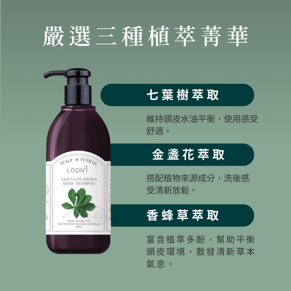 【LODNI蘿德妮】七葉樹草本洗髮精(300 ml)|油性頭皮 深層清潔 舒緩乾癢