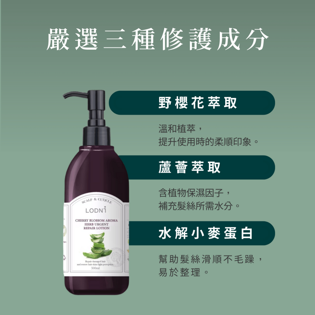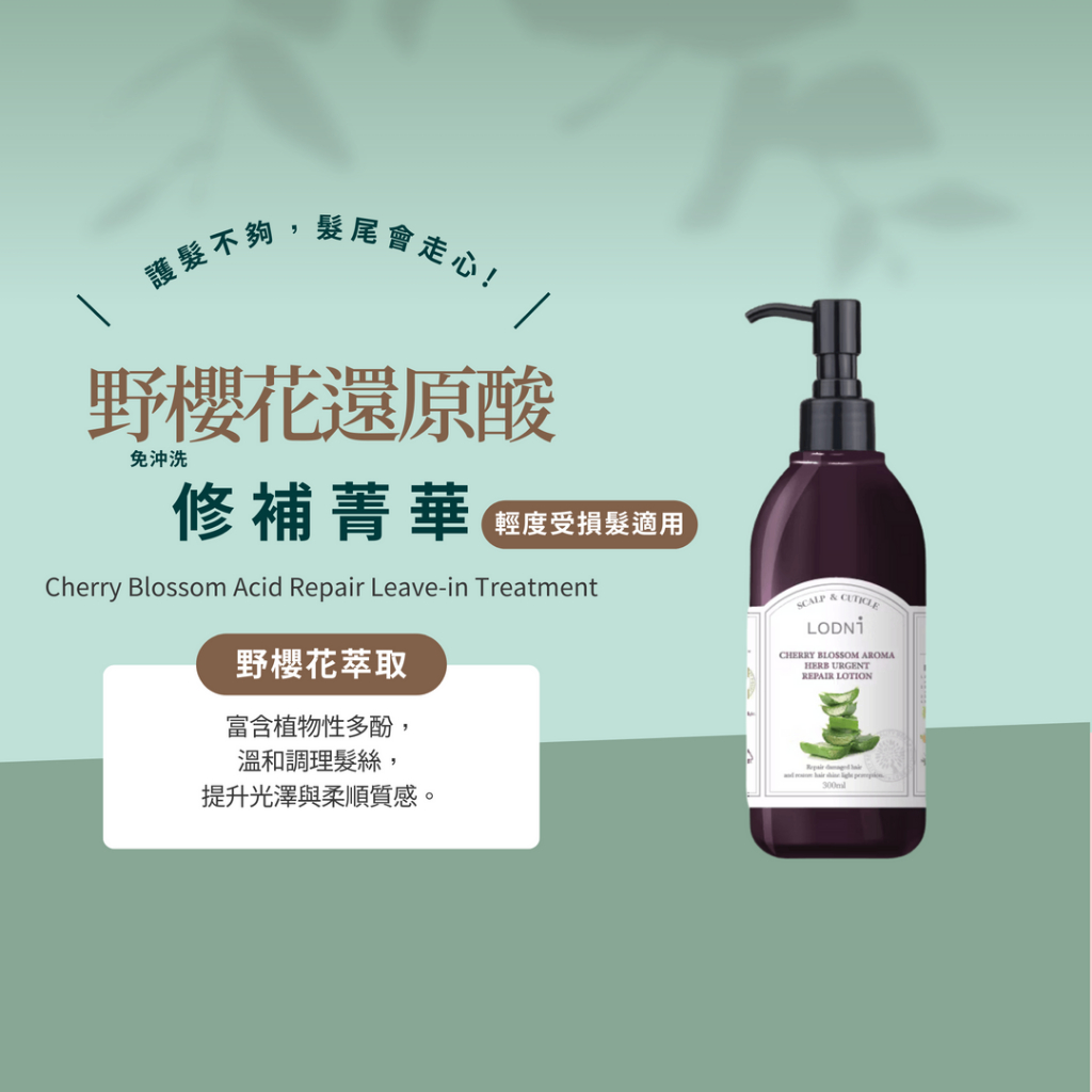 【LODNI蘿德妮】野櫻花還原酸修補菁華(300 ml)|輕度受損髮 延緩退色 免沖洗護髮