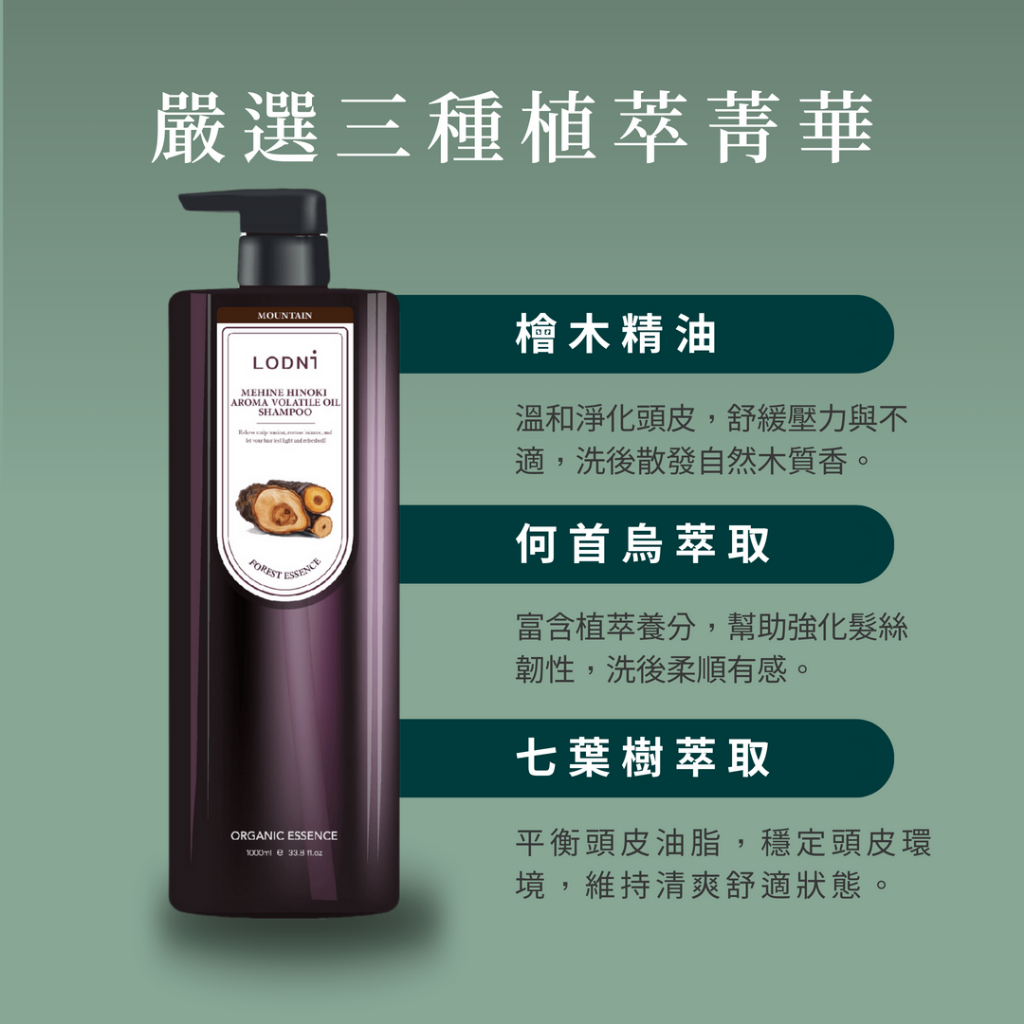 【LODNI蘿德妮】檜木精油洗髮精(1000ml)|中性頭皮 低敏溫和 木質香