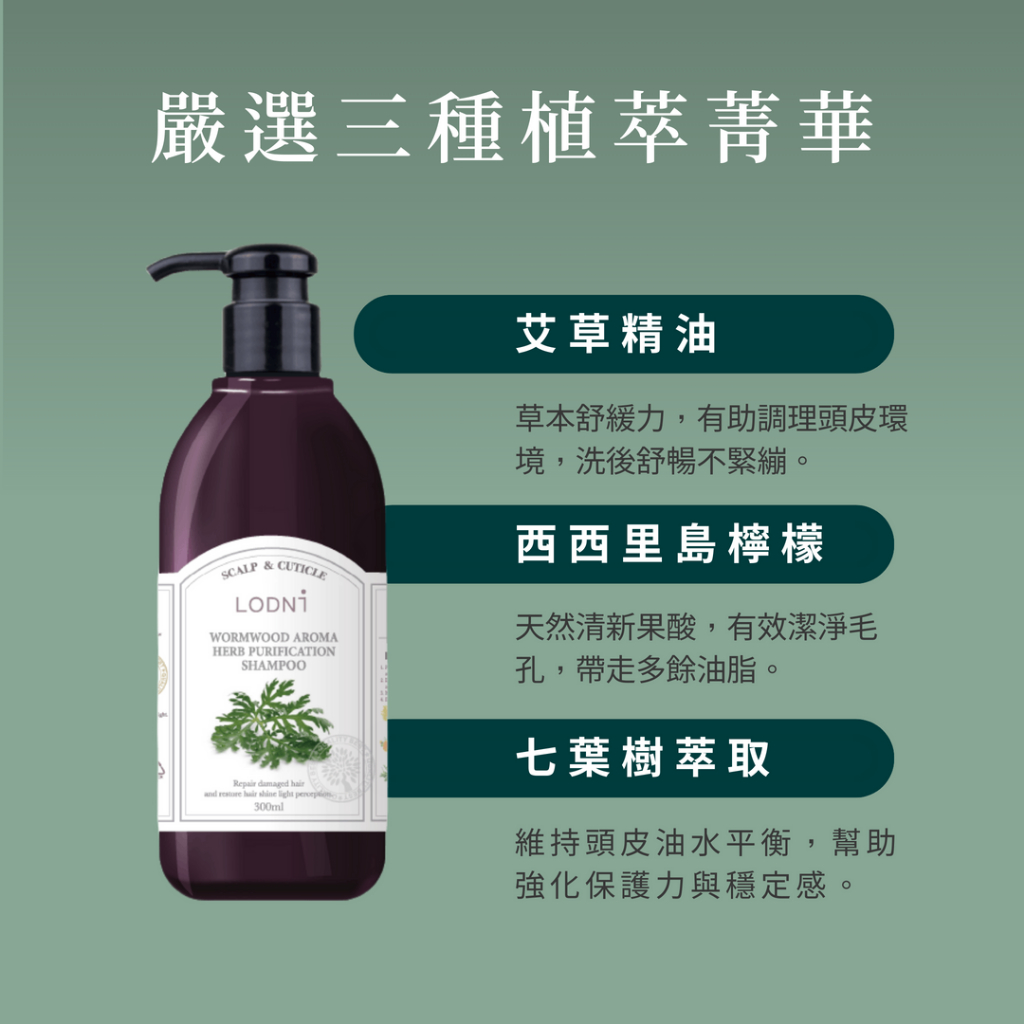 【LODNI蘿德妮】青檸艾草淨化洗髮精(300 ml )|油性頭皮 深層清潔 涼感配方