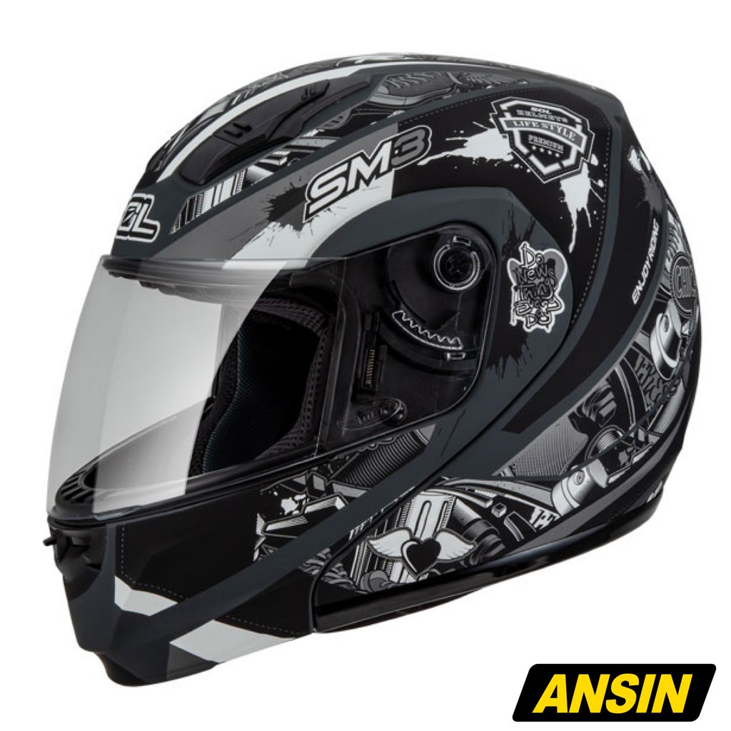 SOL 安全帽 SM-3 可掀式 惡天使 消光灰/銀 可樂帽 全罩 汽水帽 DOT SM3 | 安信商城