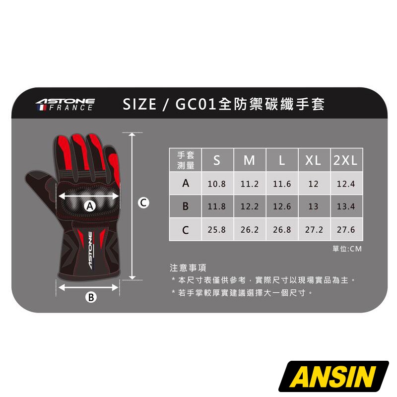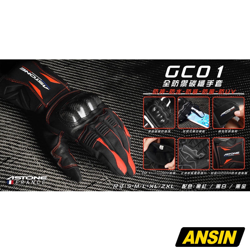 ASTONE 防摔手套 GC01 黑白 全防禦碳纖手套 超高機能性 防水 防寒 防風 碳纖護具|安信商城