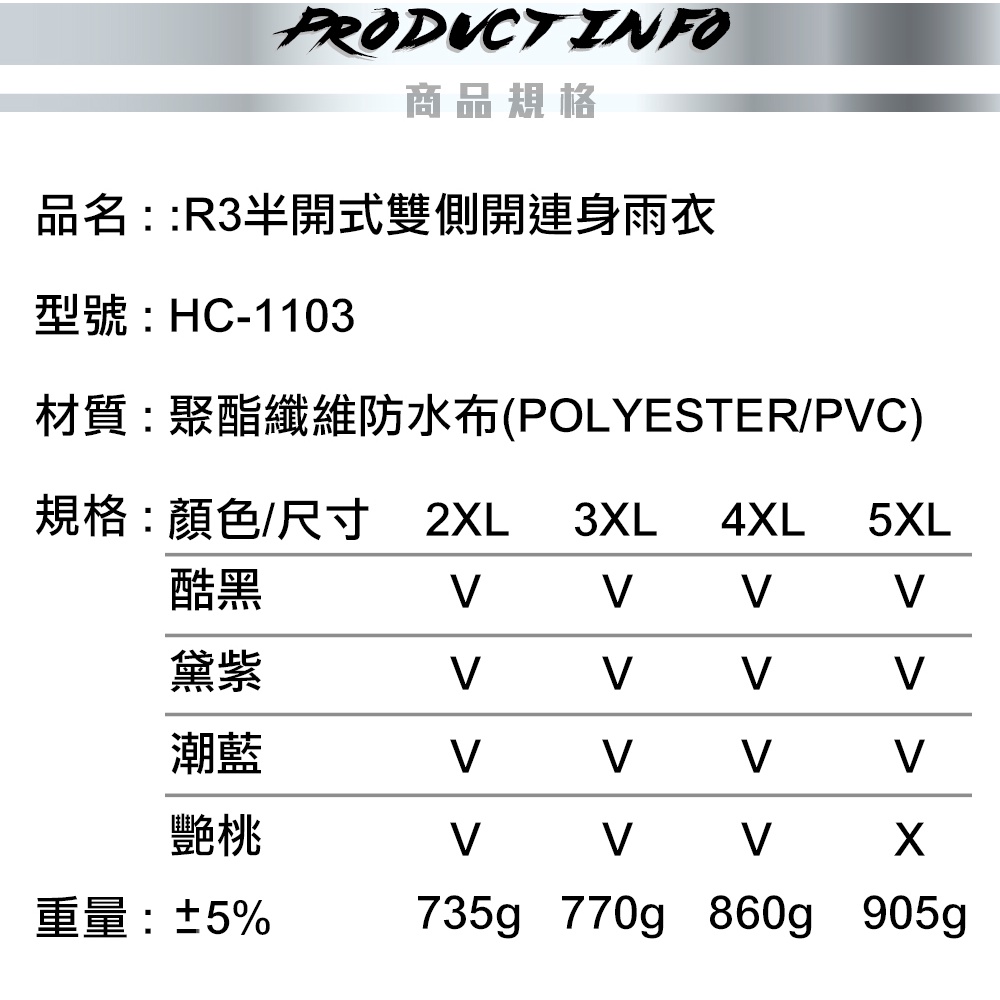 飛銳 Fairrain R3 半開式雙側開 連身雨衣 黛紫 一件式 雨衣 雨具 連身式 HC-1103 | 安信商城