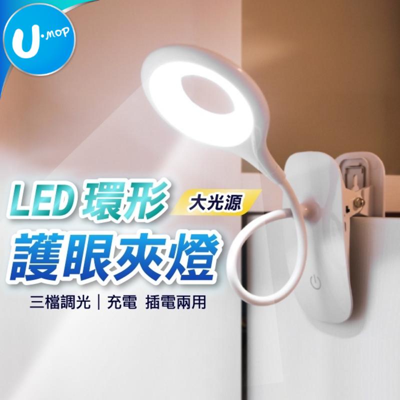 【U-mop】 環形LED檯燈 無線夾式檯燈 護眼檯燈 三檔調光 充電檯燈 桌燈 台燈 臺燈 檯燈立 燈