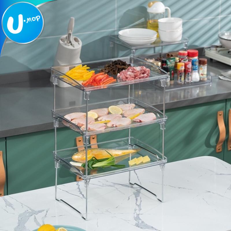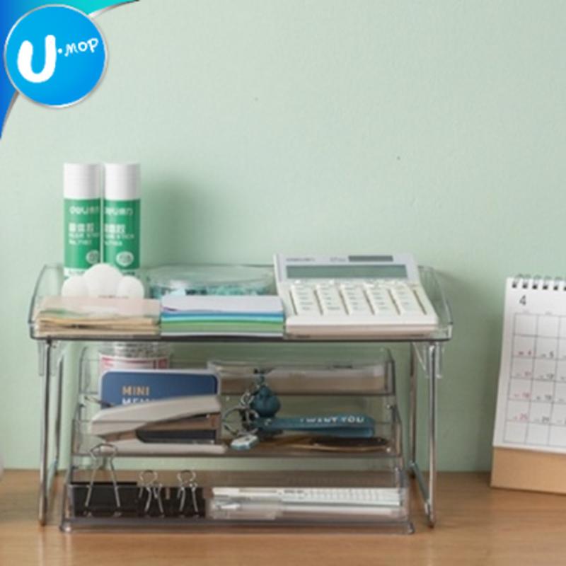 【U-mop】透明摺疊收納架 桌面增高架 桌面收納架 壘高架 置物架 疊收納架 簡約收納架 文具架 桌面架
