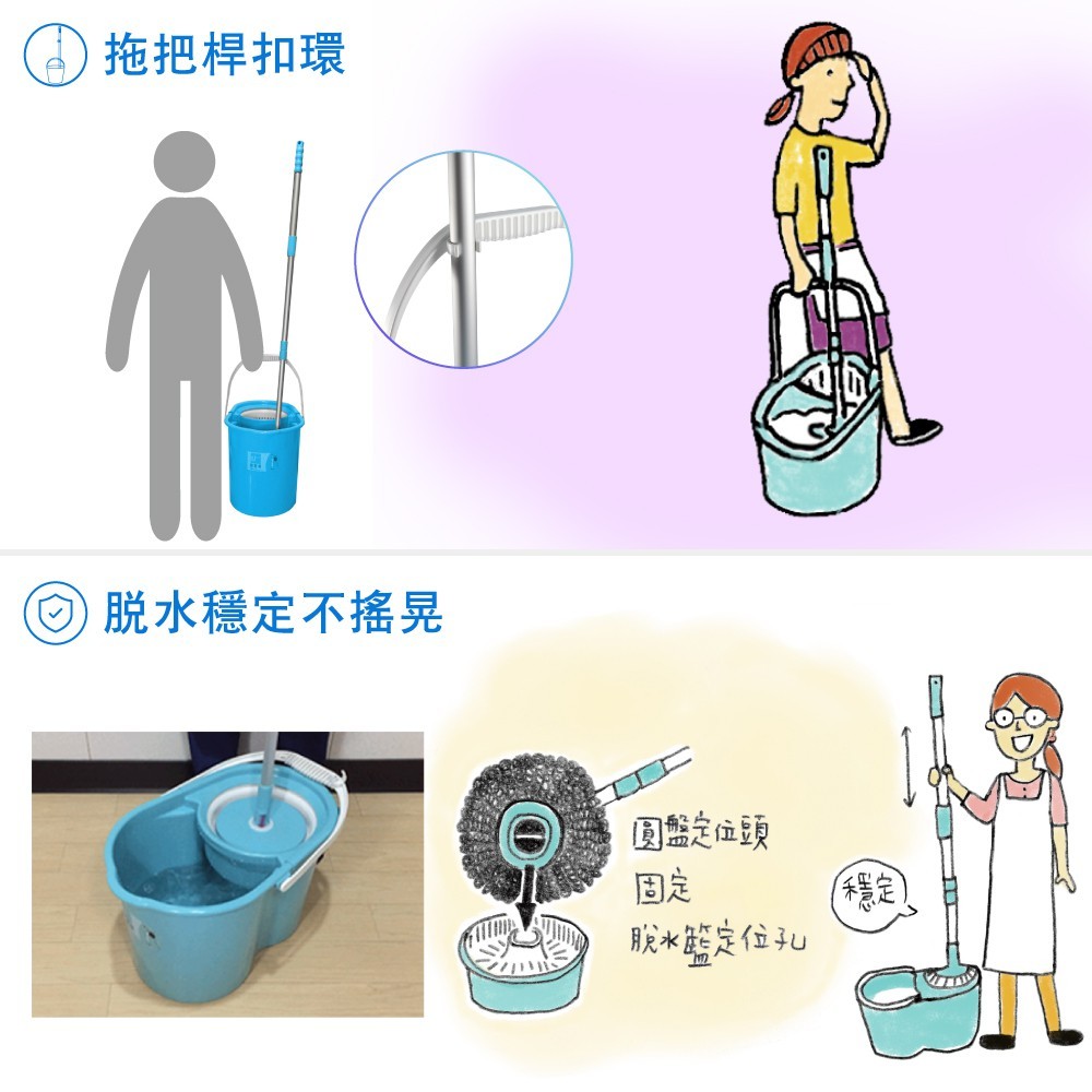 【U-mop】40cm通用布盤 旋轉拖把 免手洗手壓脫水 掃除拖地 乾濕兩用 懶人拖把平板拖把 不沾手 拖把