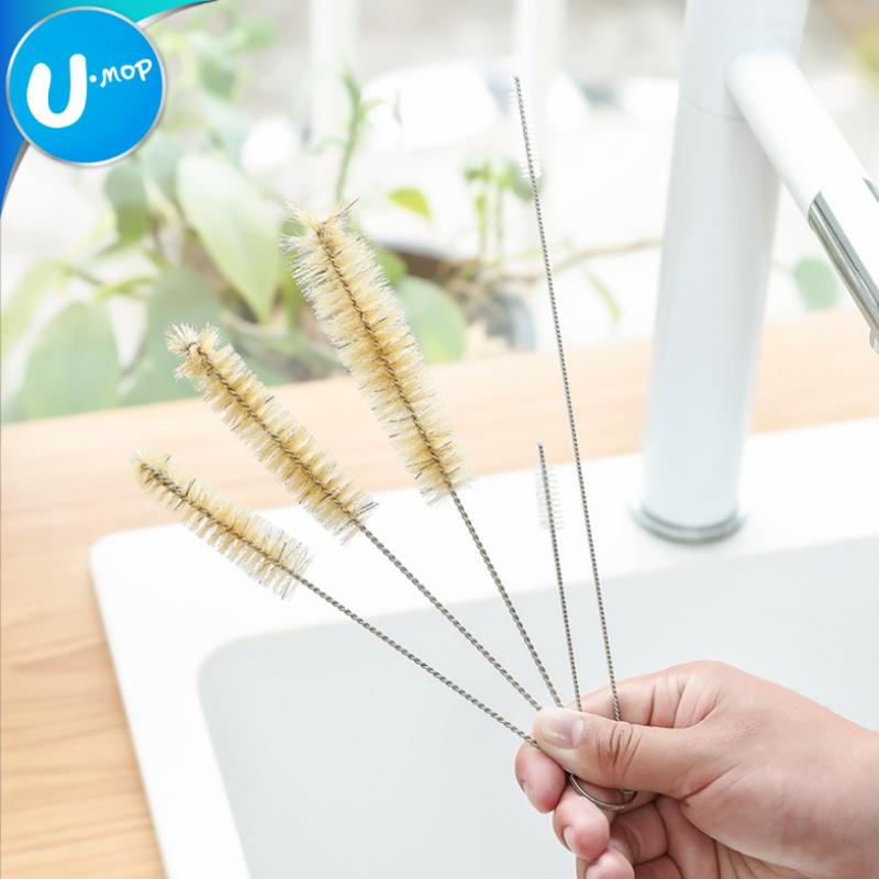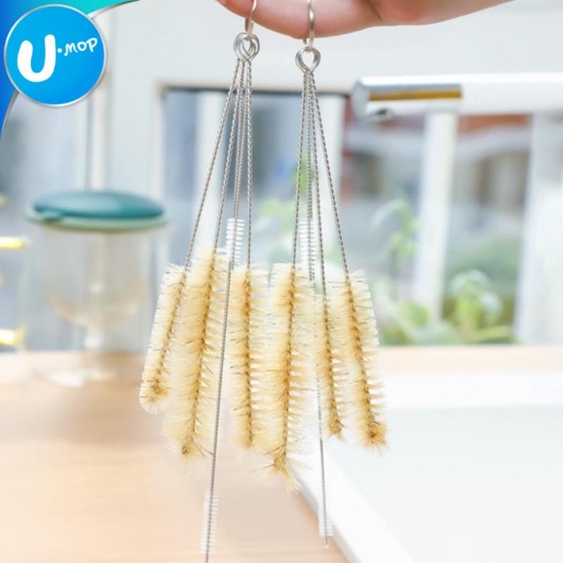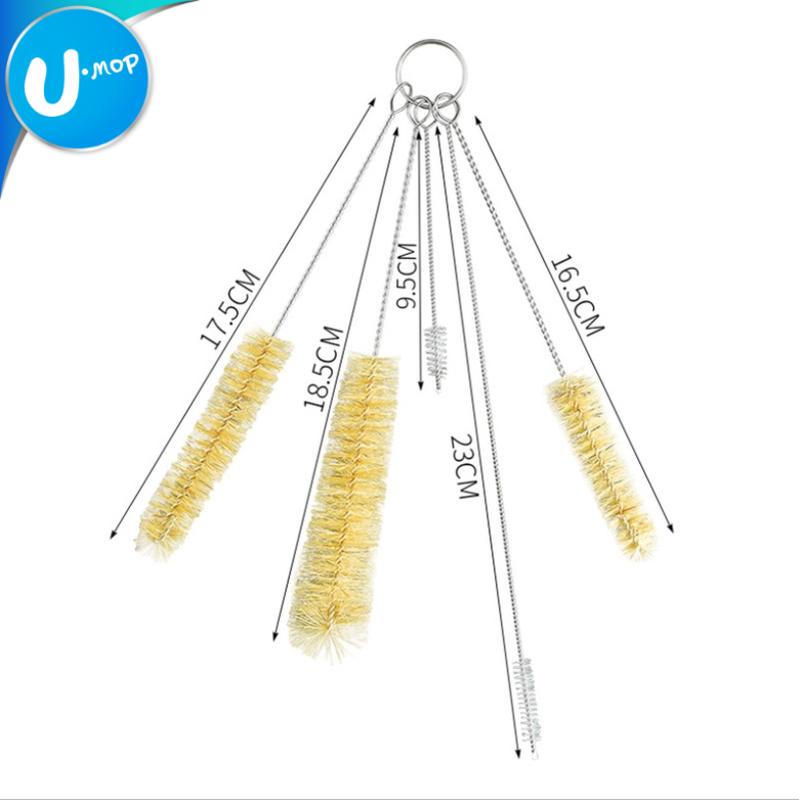 【U-mop】不鏽鋼瓶口毛刷組 壺嘴刷 細吸管刷 豬鬃毛刷 清潔刷 5入瓶口刷組 奶瓶刷|
