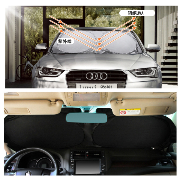 【U-mop】汽車遮陽簾 汽車隔熱 前擋雙圈遮陽簾 車子遮光布 遮光簾 汽車遮陽擋 遮陽傘 車窗遮陽簾 汽車遮陽前擋