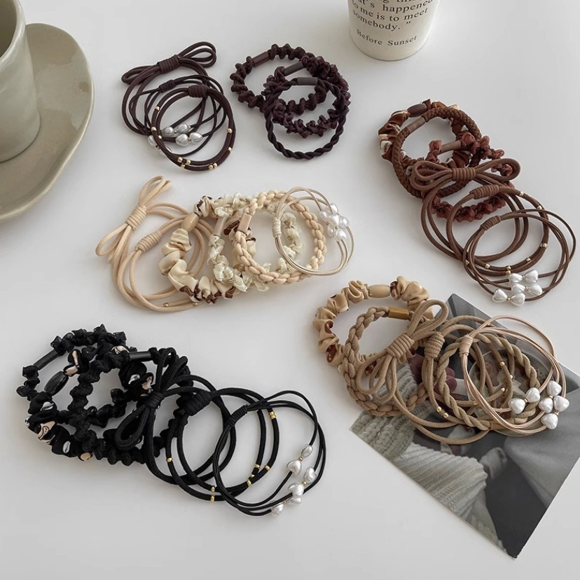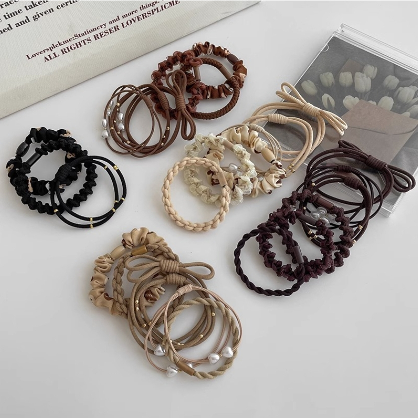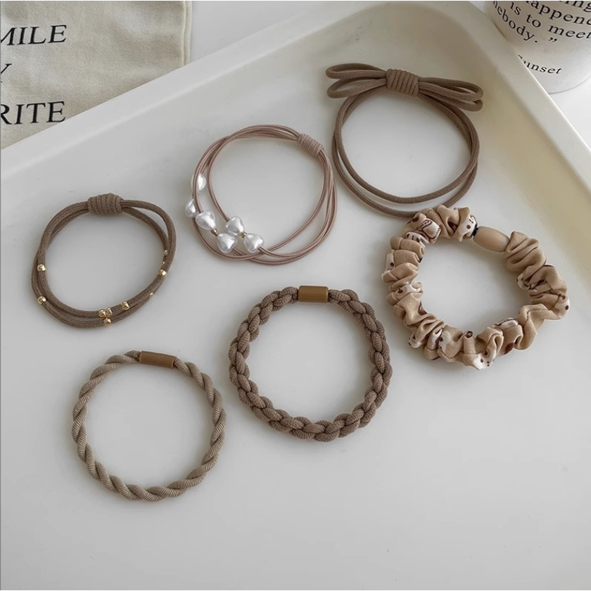 【U-mop】6件組 髮圈 髮飾 綁頭髮 髮束 橡皮筋髮圈 韓系大地色 彈力髮圈 綁頭髮髮圈 高彈力