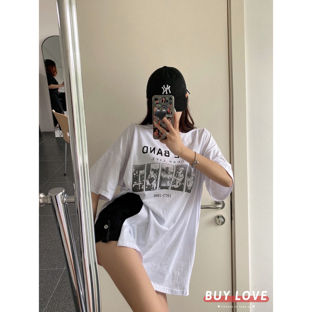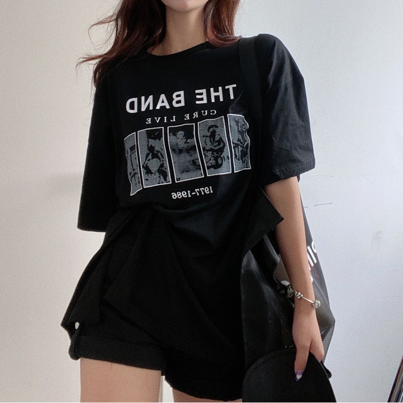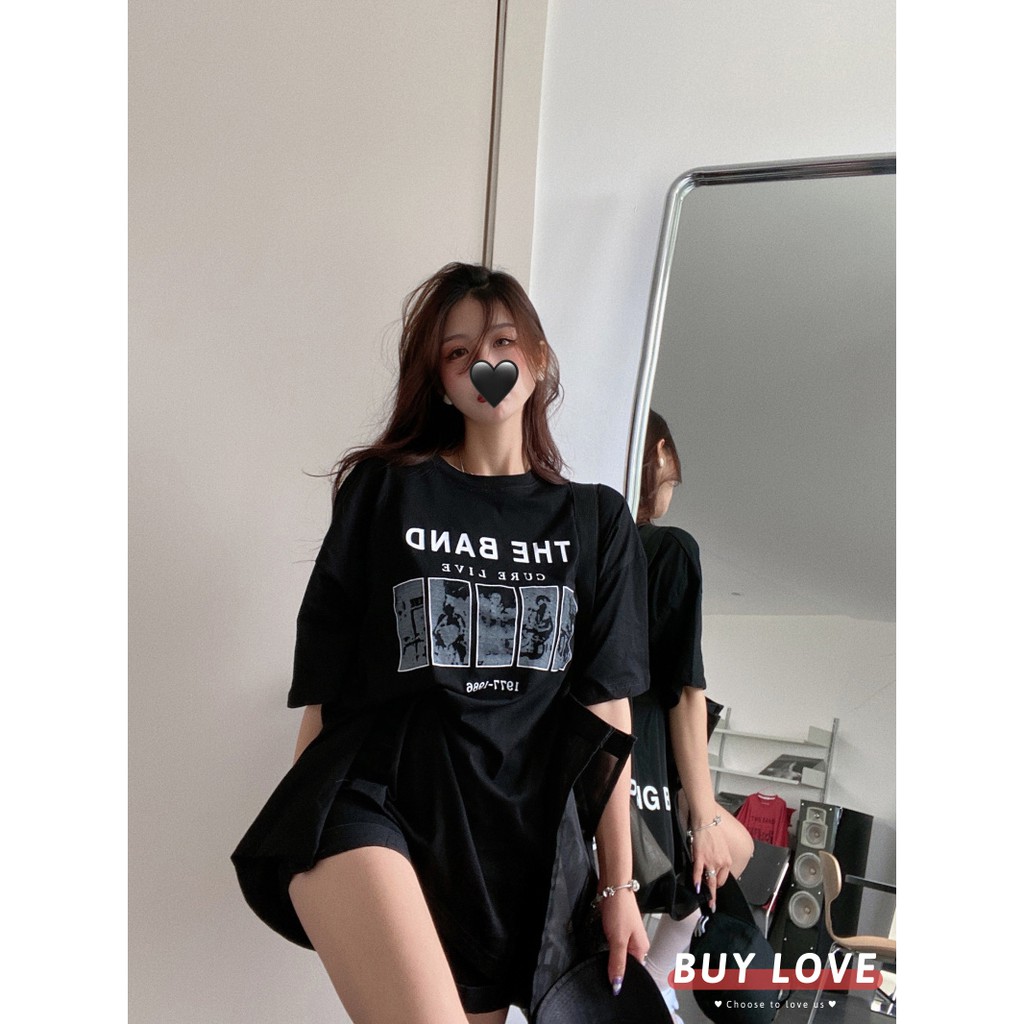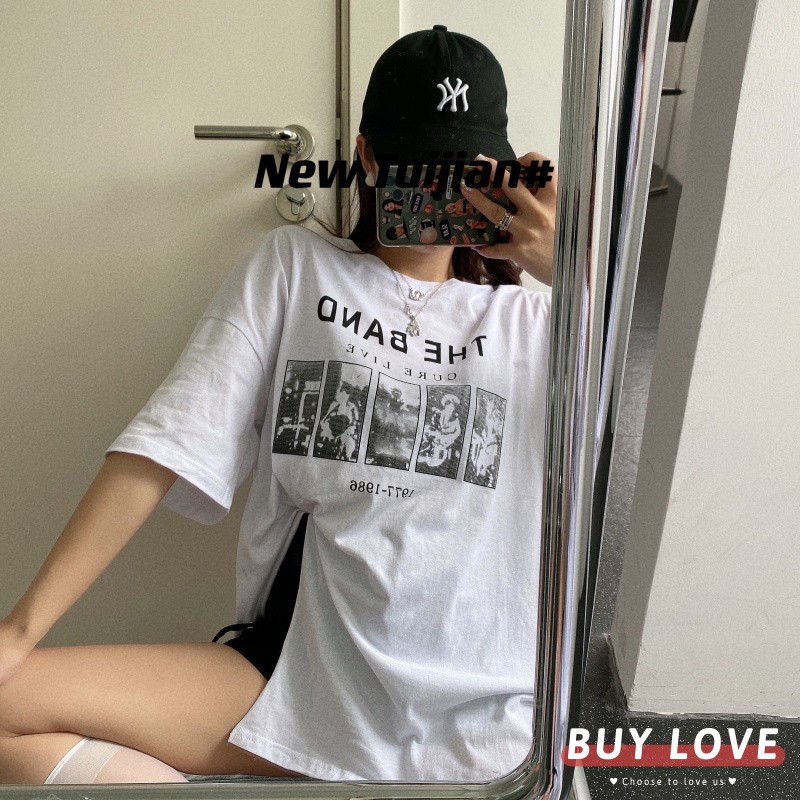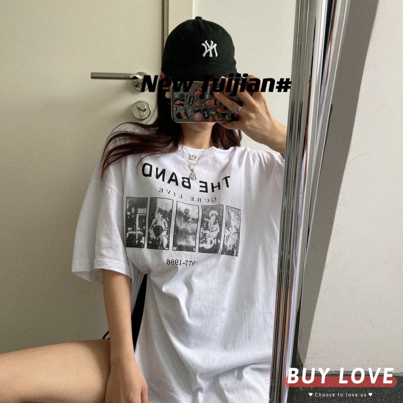 【買到戀愛】現貨出清 黑色歐膩實拍復古分格人像印花開岔棉T 短袖上衣 T恤【FA8602】