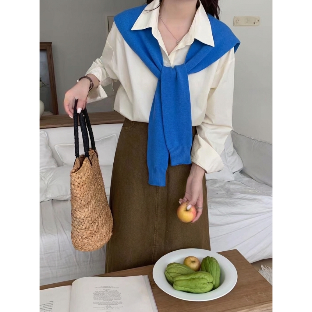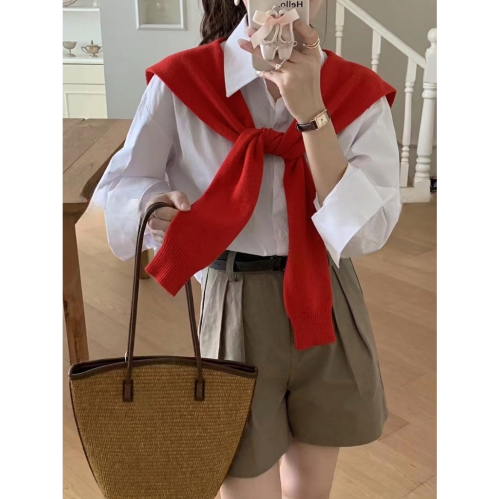 【買到戀愛】隔日到貨 多色披肩 韓版素面外搭綁結文青披肩 薄長袖 假二件 配件 罩衫 搭配披肩 【FB101】