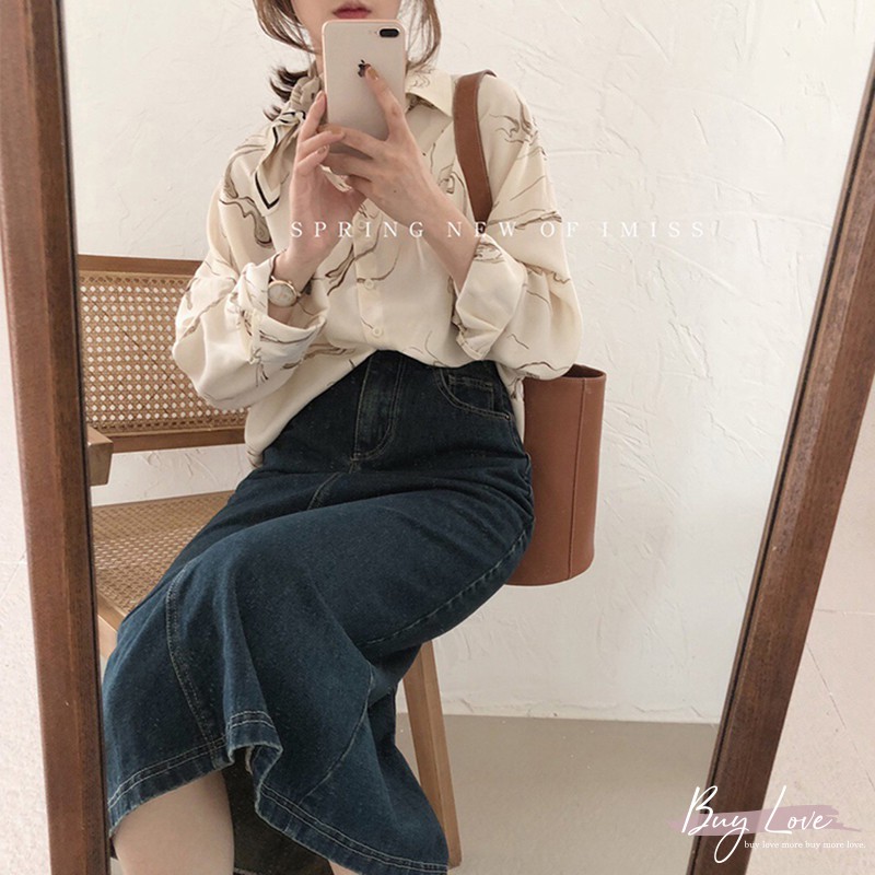 【買到戀愛】限量 現貨 韓版氣質大理石細紋雪紡襯衫 薄長袖【FA779】