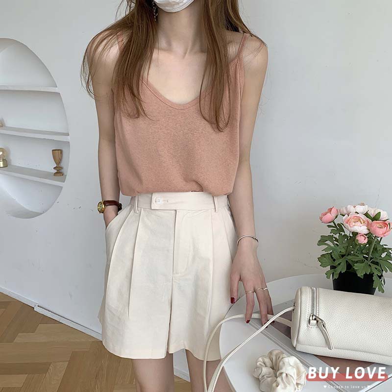 【買到戀愛】 限量 歐膩多色繽紛V領細肩素面棉背心 柔棉 無袖上衣 小可愛 細肩背心【M0708】