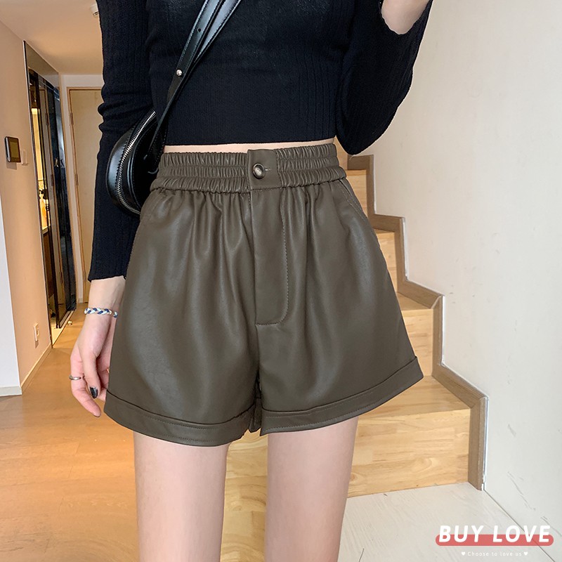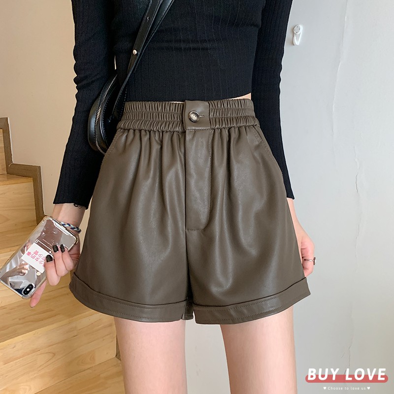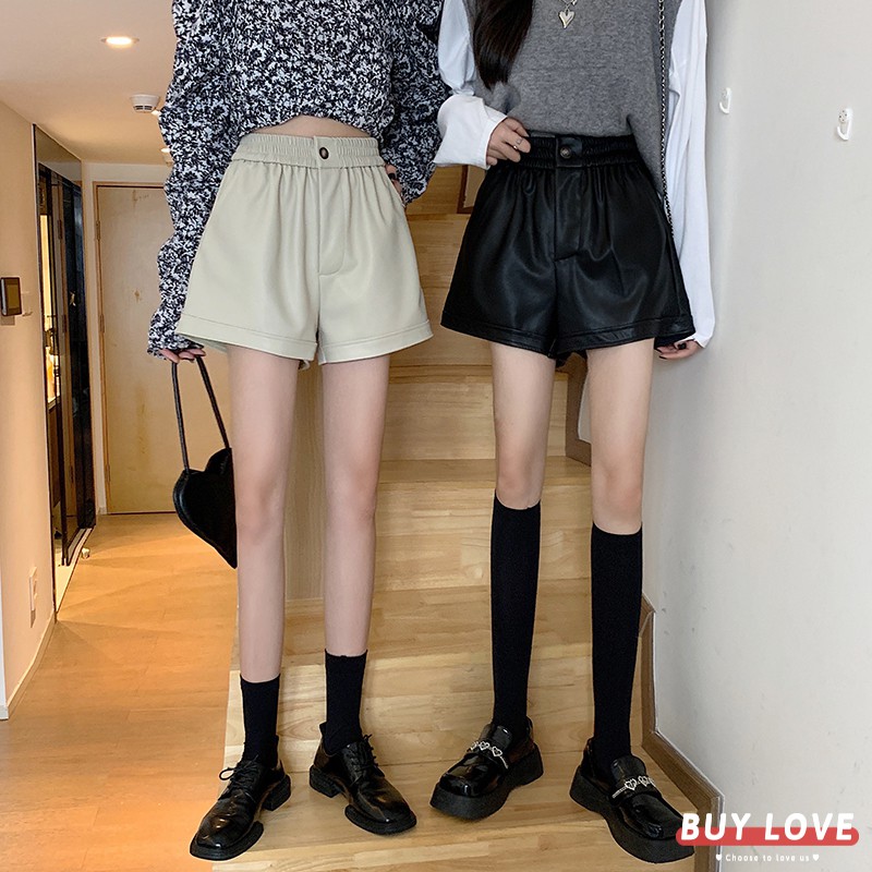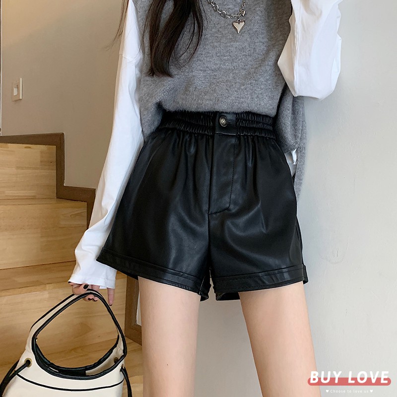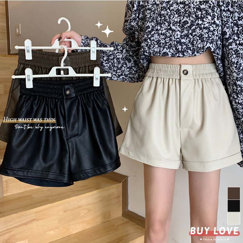 【買到戀愛】現貨出清 多碼多色鬆緊高腰款皮短褲【HS2956】
