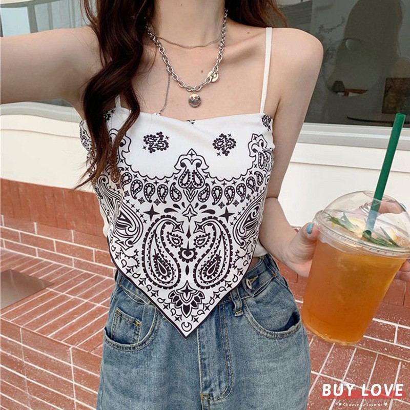 【買到戀愛】售完不補 韓版圖騰假兩件性感露肚不規則小背心 小可愛 無袖上衣 【M1288】