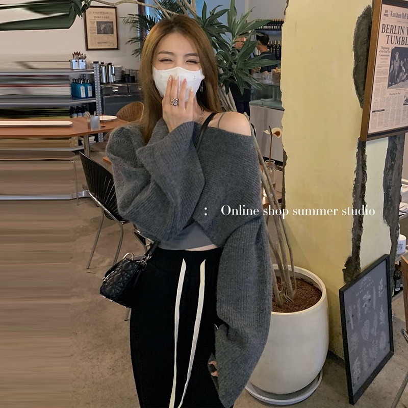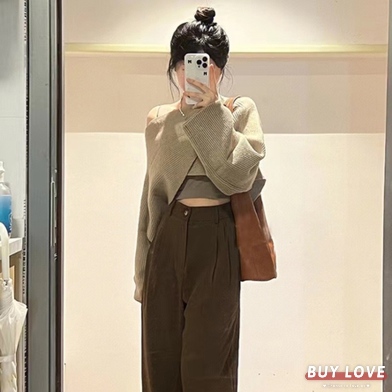 【買到戀愛】隔日到貨 女裝 短版歐逆溫柔交叉短版針織毛衣 長袖 秋裝 T恤 針織【FB582】
