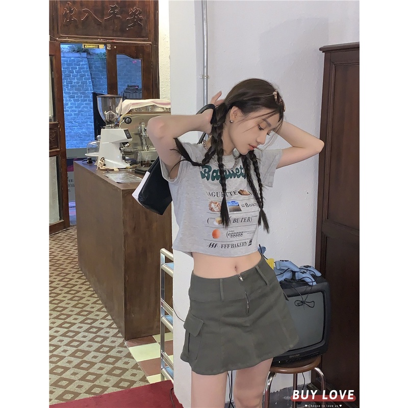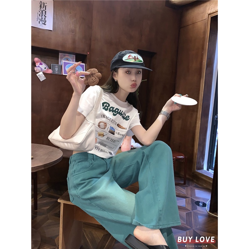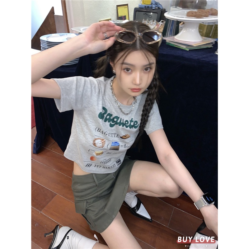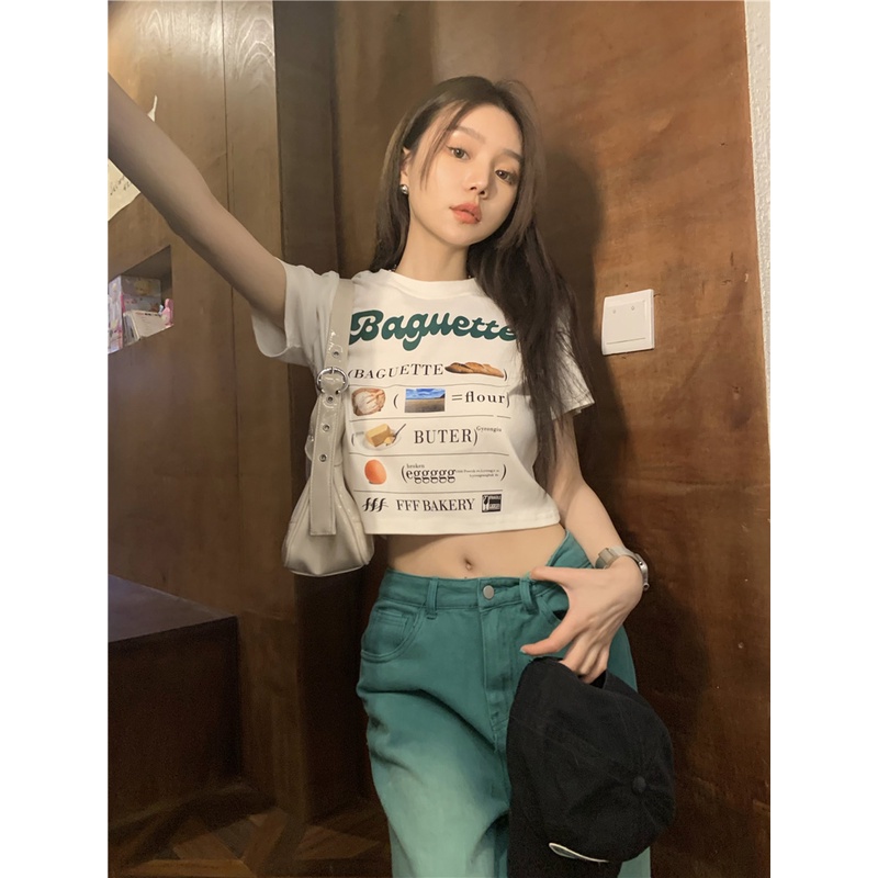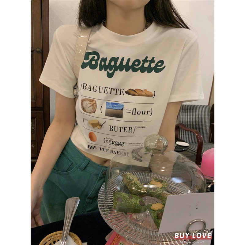 【買到戀愛】現貨出清 復古麵包印花短袖上衣 顯瘦上衣 女上衣 短袖t恤 短T 素T 女裝 寬鬆上衣【FT0817】